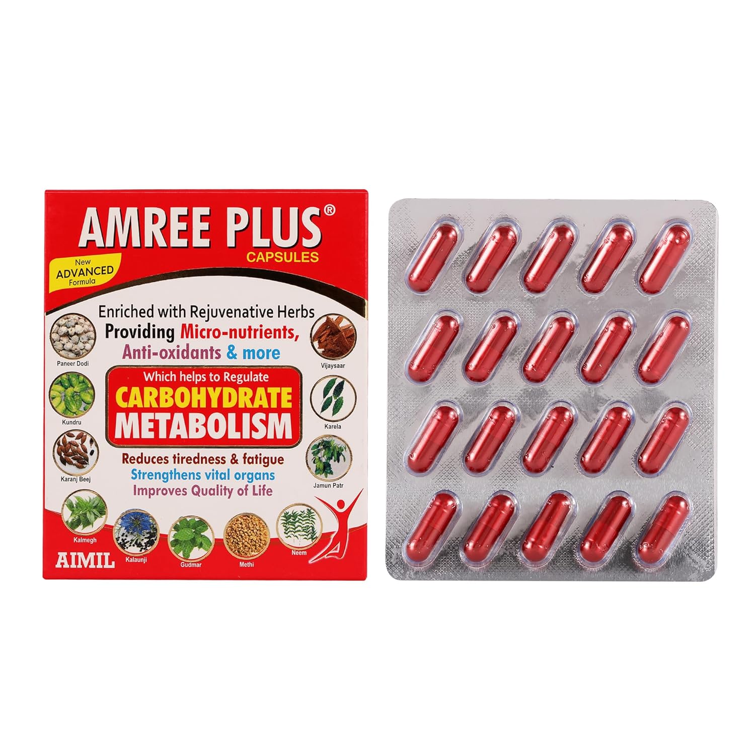 Generic Name : AIMIL Amree Plus 20 Capsules Ayurvedic Medicine|| Natural Care | (Pack of 2)