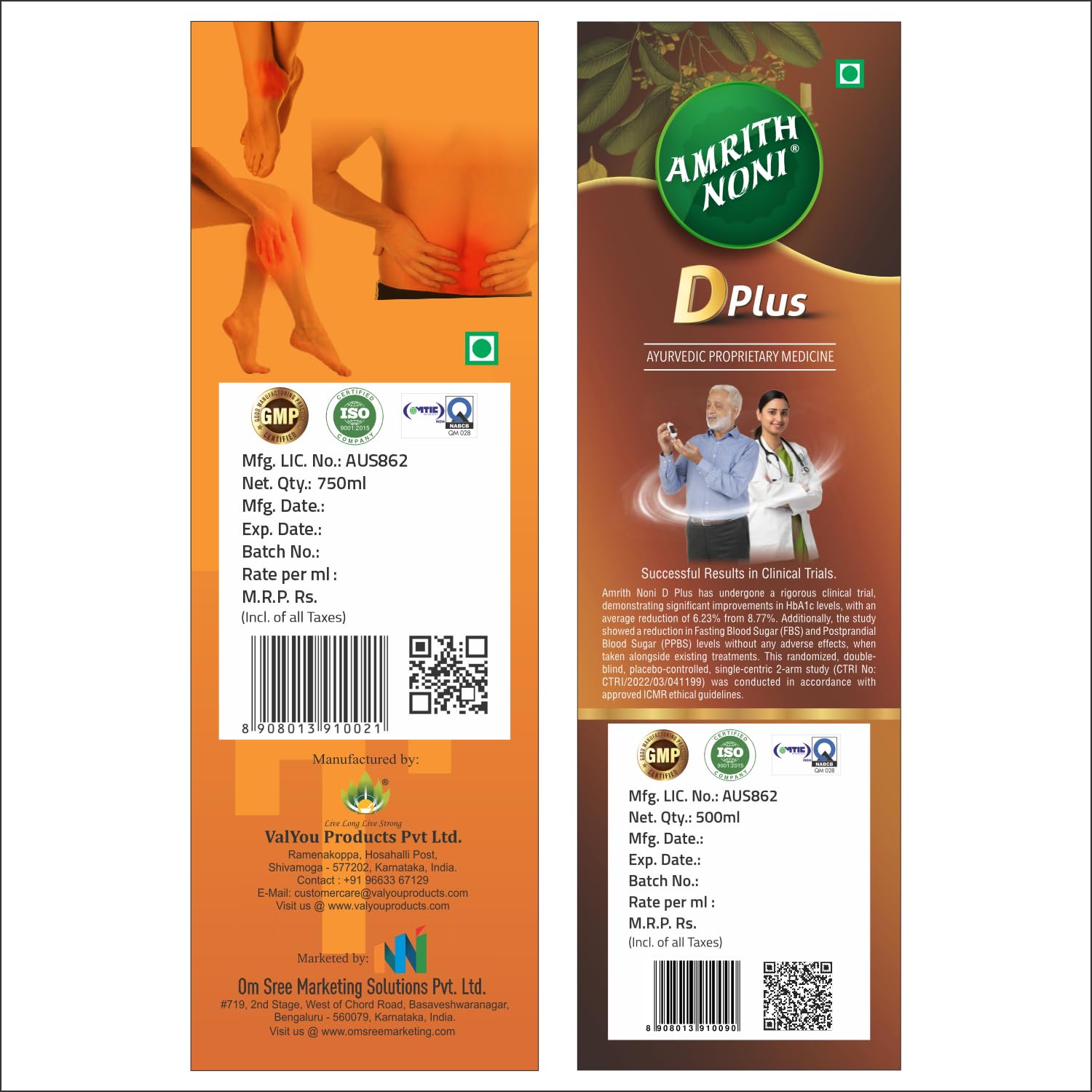 Dual Health Support: Combines Amrith Noni D Plus and Artho Plus for comprehensive wellness, targeting both blood sugar regulation and joint health.