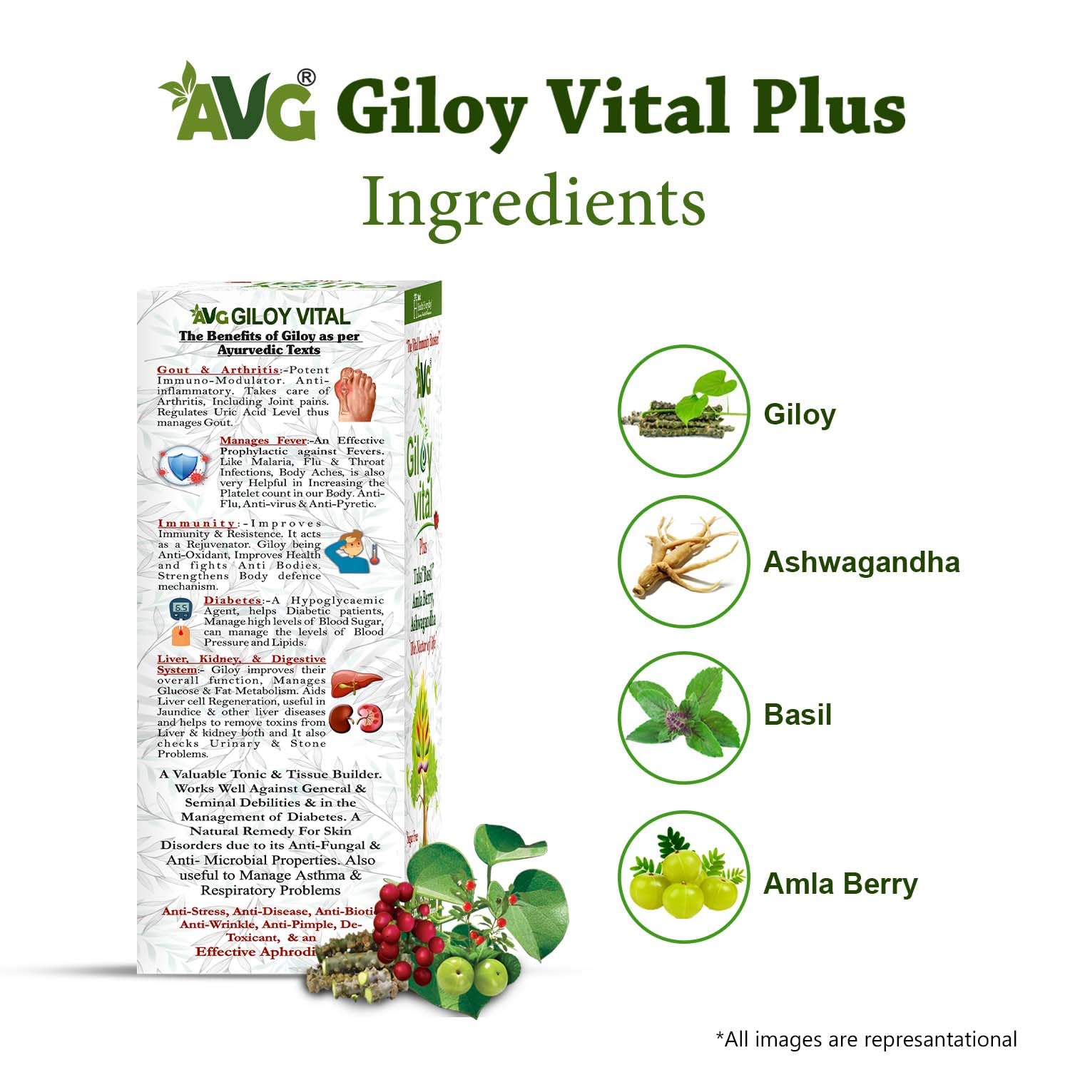 AVG Health Organics Giloy Vital | Giloy Juice with Ashwagandha & Tulsi, 1000ml, Ayurvedic Supplement | Natual Immunity Booster, Improves Platelet Count