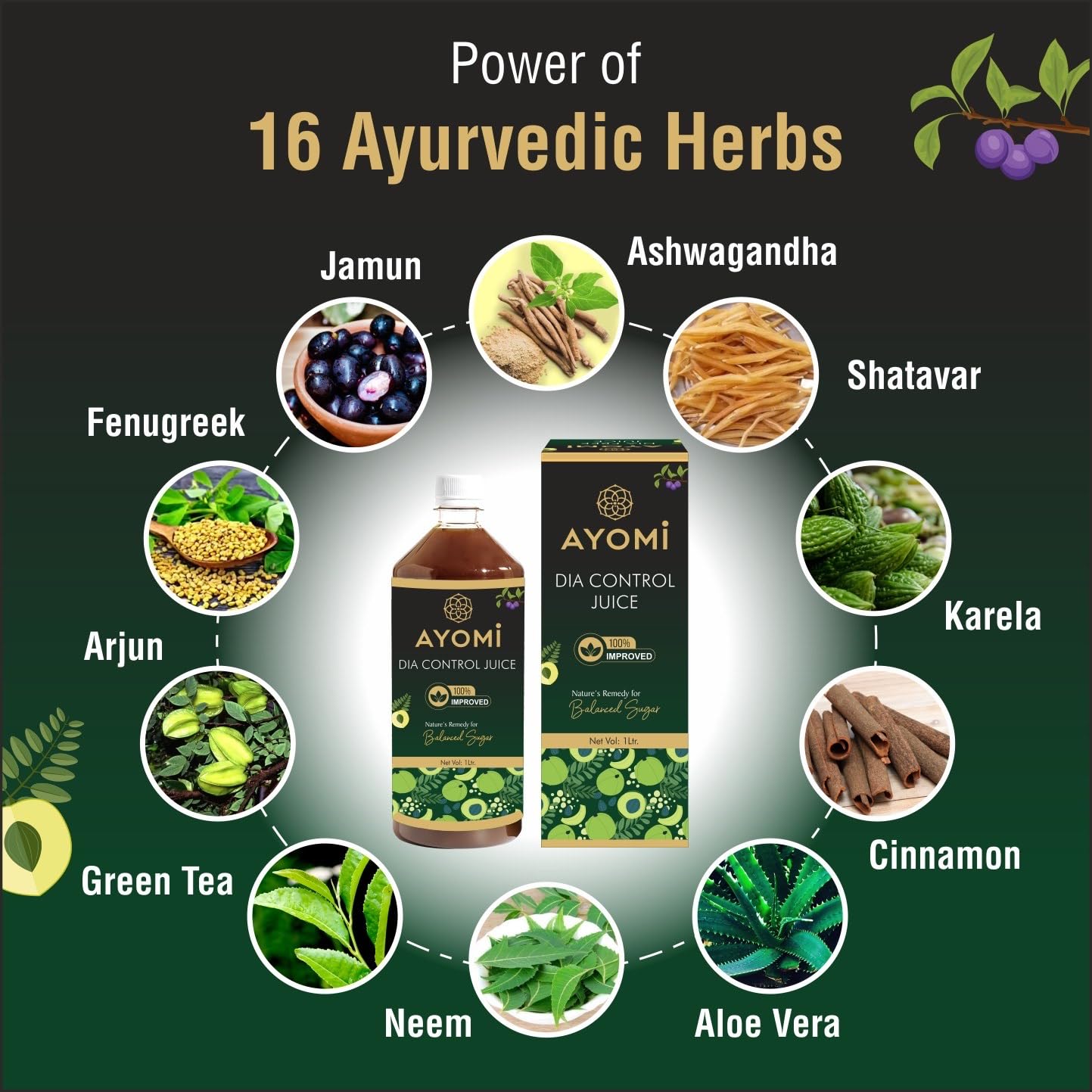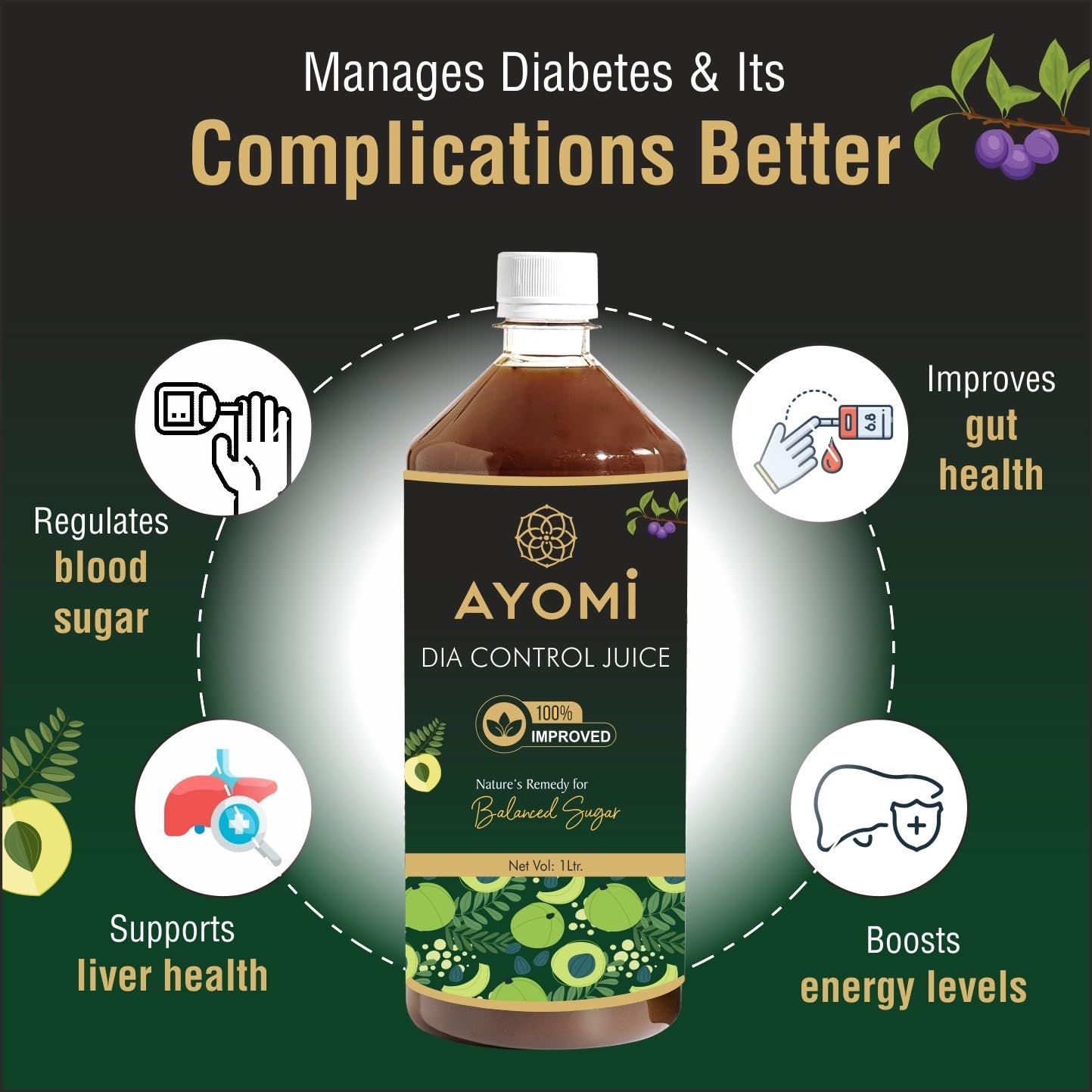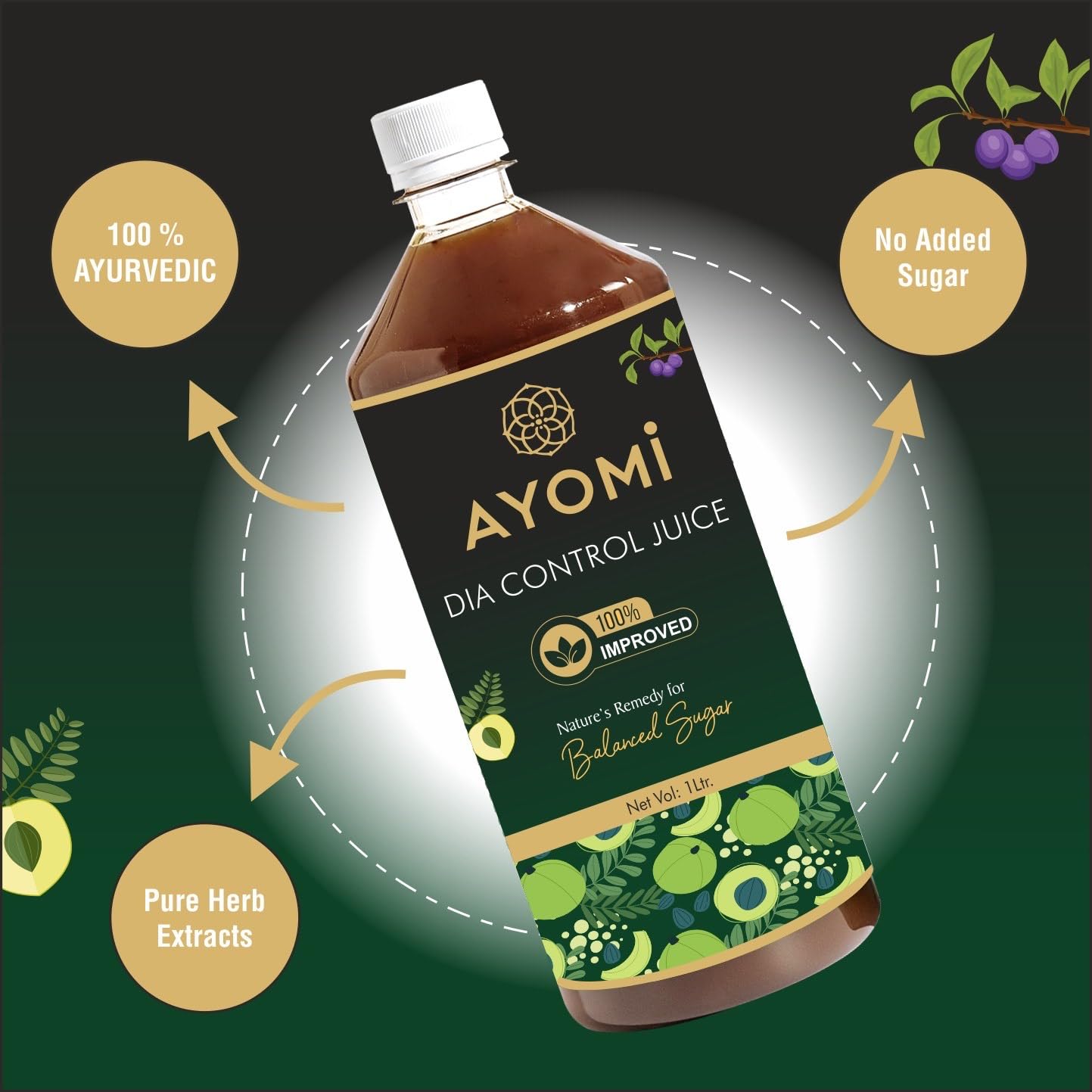 Ayomi Dia Control Juice 1L | Ayurvedic Diabetes Care Juice with Karela, Jamun, Amla, Neem & Giloy | Natural Herbal Drink for Sugar Control, Detox & Metabolism Support | Diabetic Friendly Health Supplement