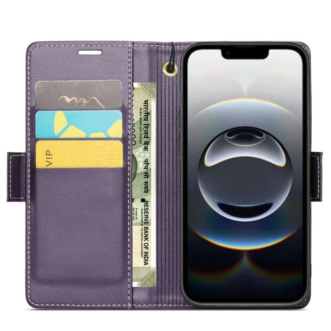 Bracevor Deluxe Leather Flip Cover case for iPhone 16e / iPhone SE 4 : Purple | Full Camera Cover | RFID Blocking Wallet Pockets | 360 Degree Protection