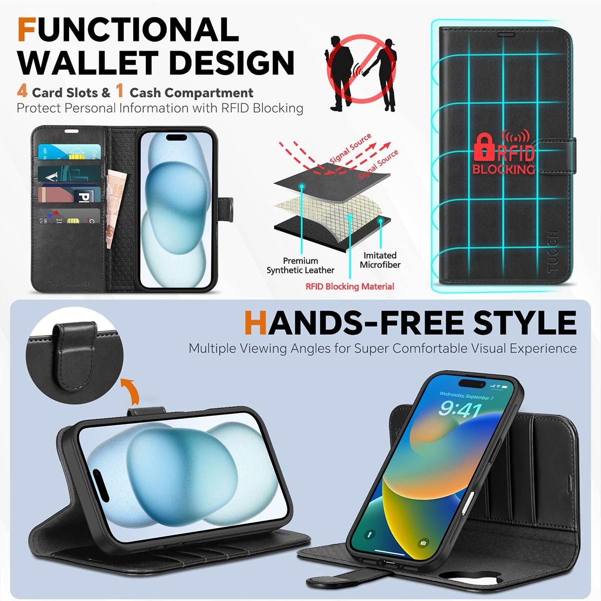 2 in 1 Wallet Case Detachable leather wallet cover with card slots and cash compartment. Wallet cover is easy to attach and remove