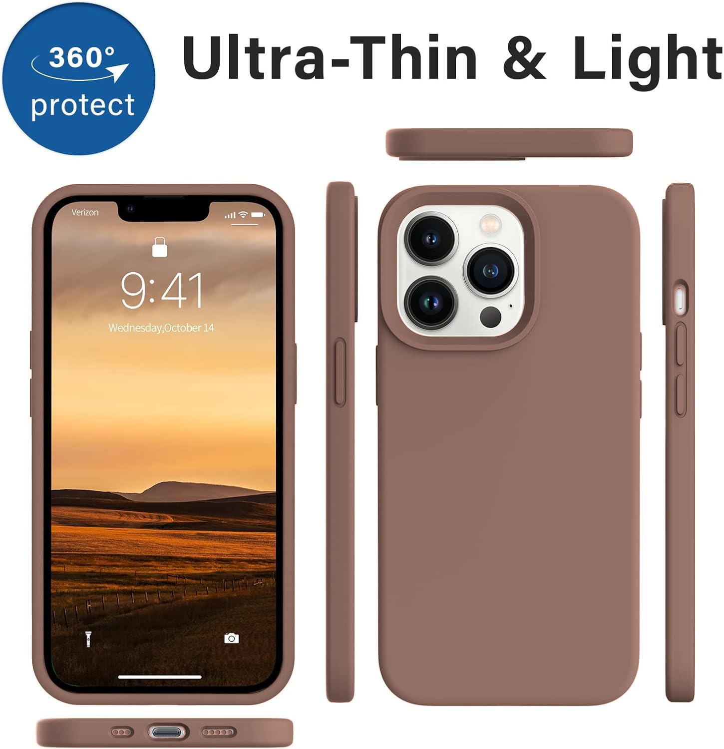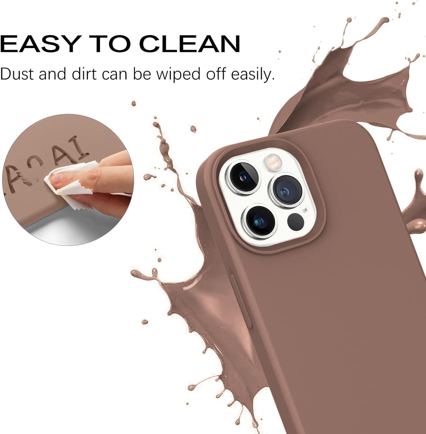Elzzi® Microfiber Candy Case Compatible for iPhone 13 Pro 6.1 inch, Shockproof Slim Back Cover Liquid Silicone Case – Brown