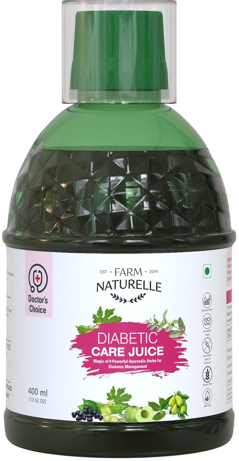 Farm Naturelle – Most Effective Ayurvedic Diabetic Care Juice (2x400ml) is formulated to support blood sugar management using natural ingredients known for their health benefits. This offer provides one extra bottle for free, making it a 1+1 deal. The juice combines potent Ayurvedic herbs such as Amla, Karela, Jamun, Kutki, and Guduchi, which are traditionally used to help manage blood sugar levels and promote overall well-being. Amla, rich in Vitamin C, is known for its antioxidant properties, which may help in reducing oxidative stress. Karela, or Bitter Gourd, is recognized for its potential to regulate glucose levels in the body. Jamun is known for its ability to improve insulin sensitivity, while Kutki may support liver health and detoxification. Guduchi, also known as Giloy, is valued for its immune-boosting and anti-inflammatory properties.