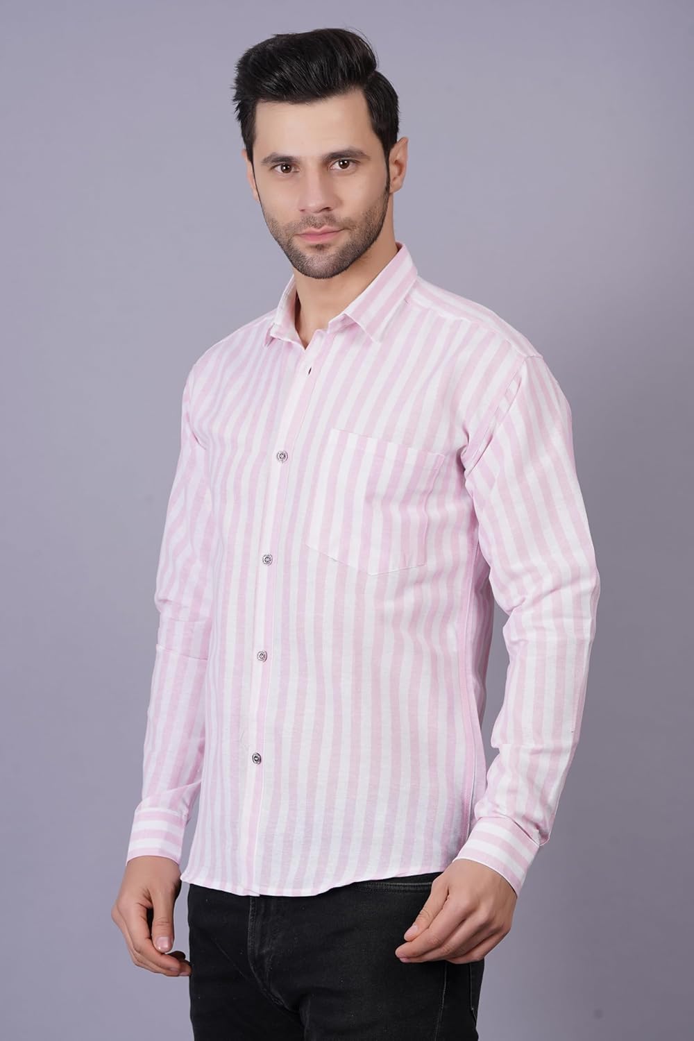 FEBRi Cotton Blend Casual Shirt for Men | Stripes Shirt for Men | White and Color Stripes