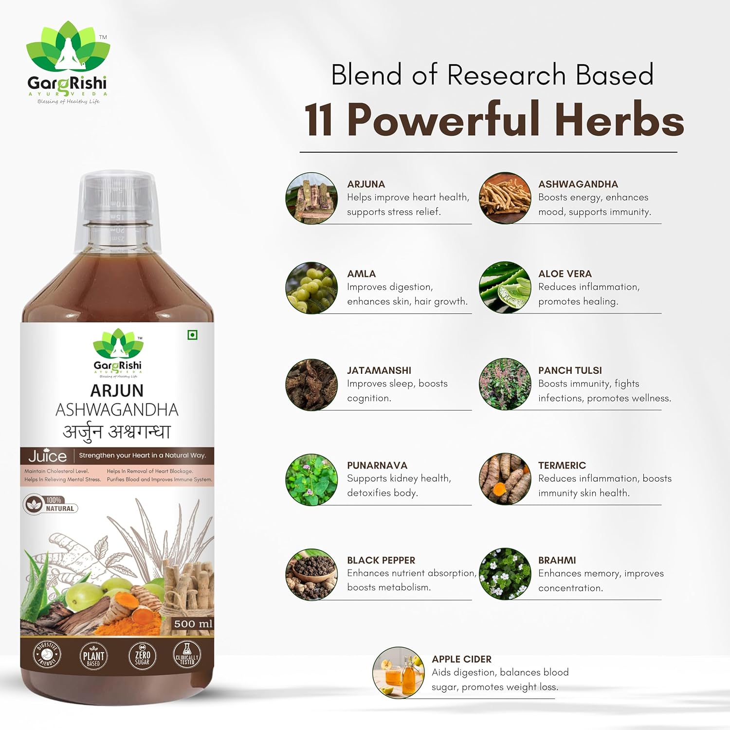 GARGRISHI Arjun Ashwagandha Juice & Neem Karela Jamun Combo | Ayurvedic Herbal for Heart Health, Immunity & Diabetes Care | Blood Sugar Control, Blood Pressure Support – 2 x 500ml