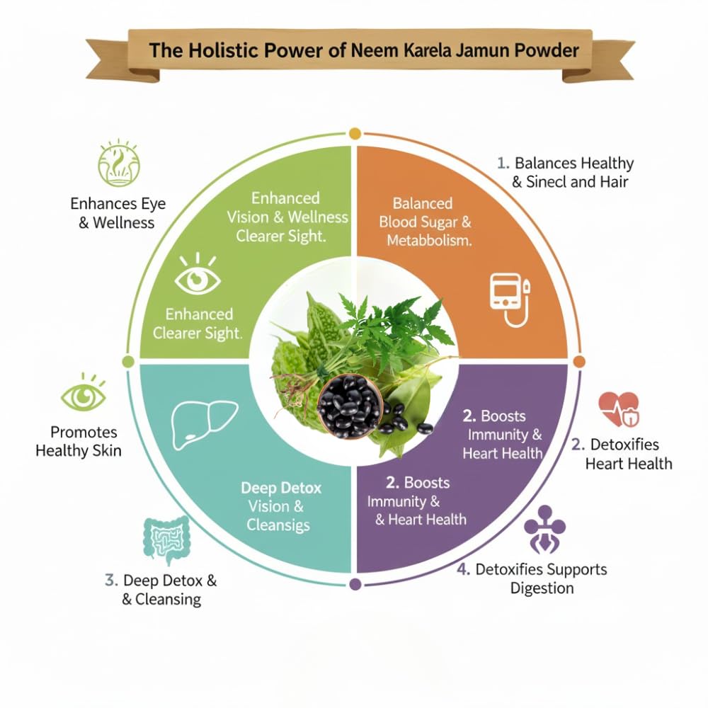 Natural Diabetes Care: Combines the benefits of Karela, Jamun, and Neem to help regulate blood sugar levels naturally.