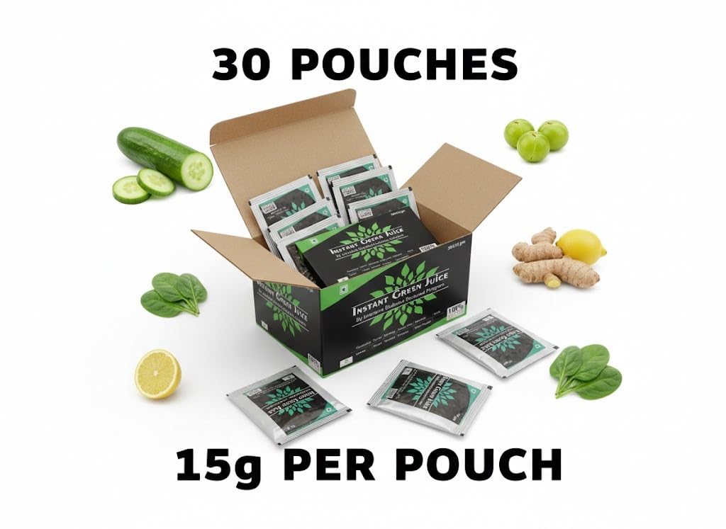Reclaim your health the natural way with Instant Green Juice Powder — a science-backed, nutrient-packed formula designed to detoxify, energize, and protect your body from within. Each sachet is a powerhouse of flavonoids, vitamins (A, D, E, B12), and plant hormones carefully preserved through advanced spray-drying technology — keeping nature’s freshness and vitality intact. Simply mix one sachet in 200 ml of water or curd, and your wholesome green drink is ready in seconds!