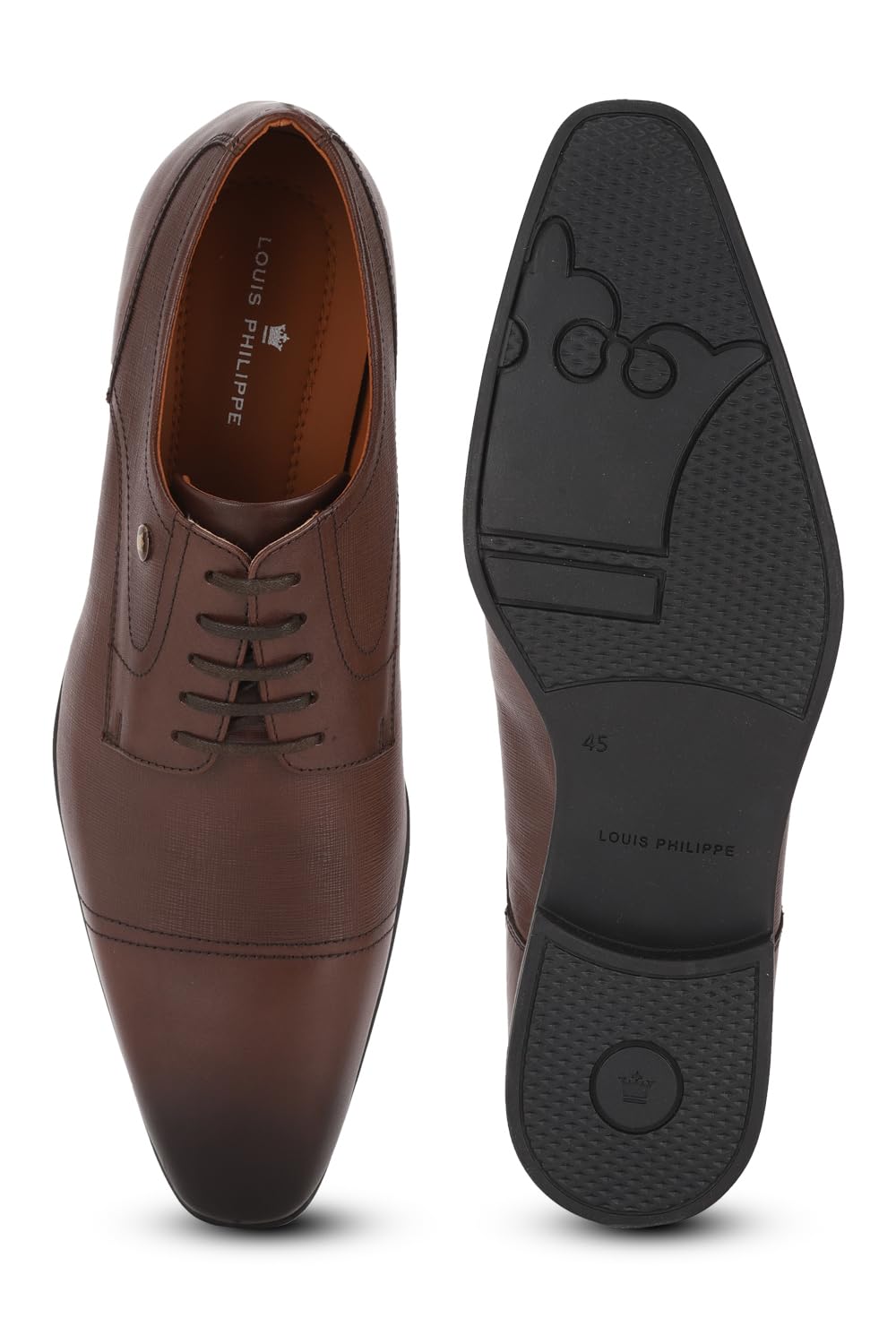 Louis Philippe Men Premium Leather Breathable Lining Material Anti Slip with Heel TPR Sole Formal Derby Shoes