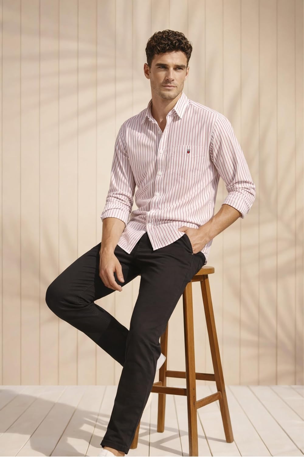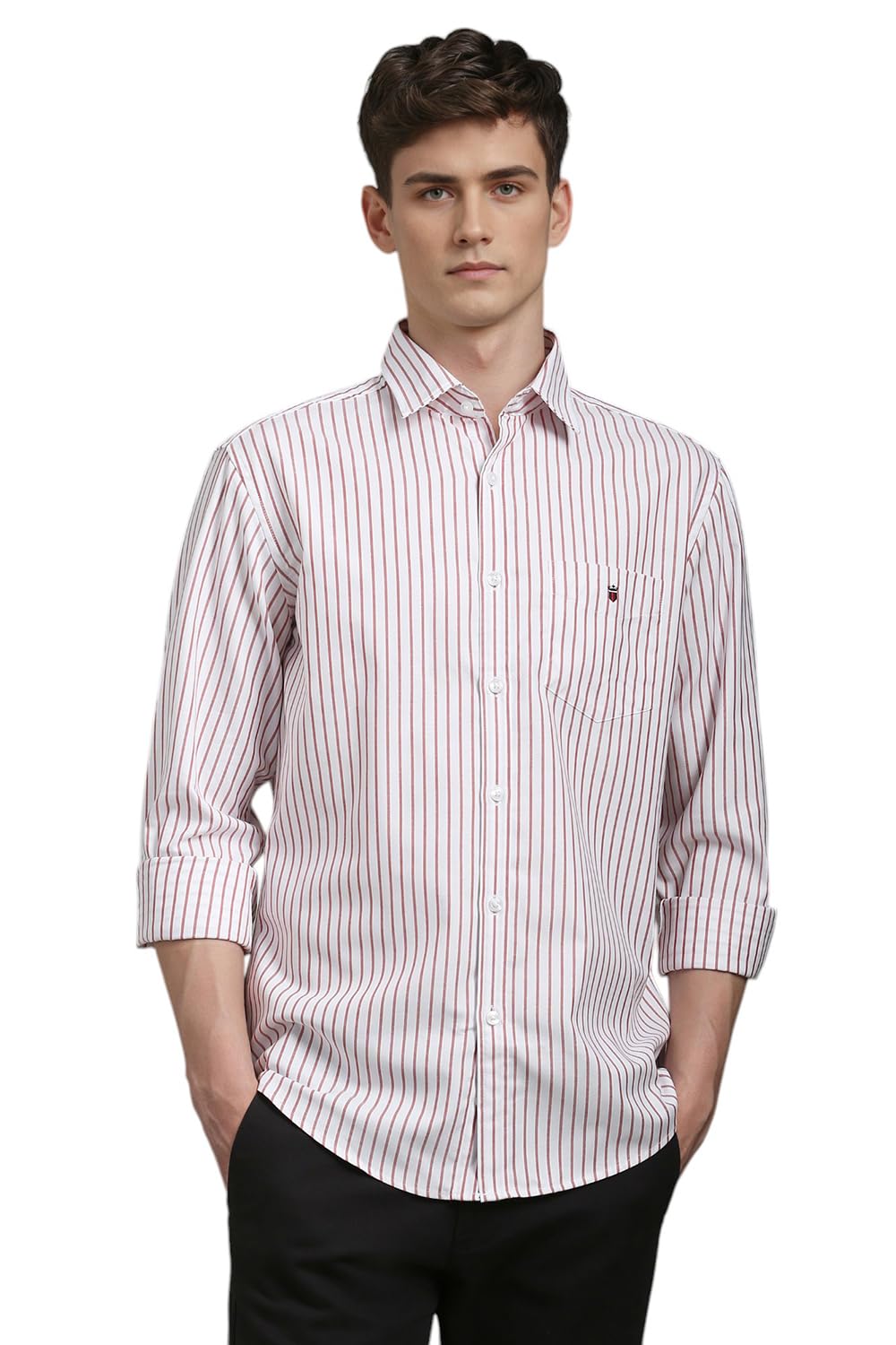Louis Philippe Men’s Slim Fit Signature Oxford Easy Care, Natural Stretch Full Sleeve Stripe Casual Shirt