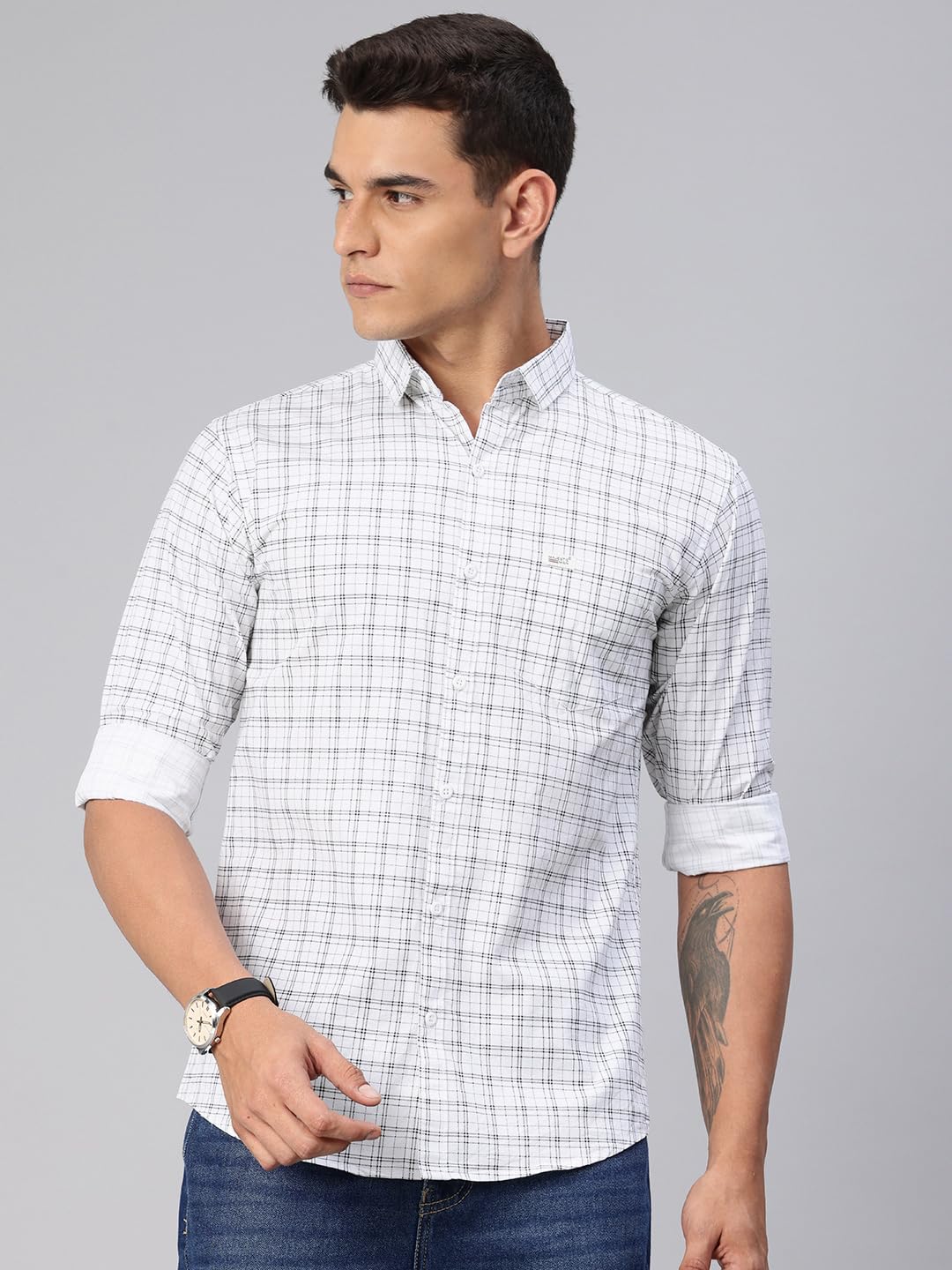 Majestic Man Comfort Slim Fit Spread Collar Small Checked Cotton Casual Shirt