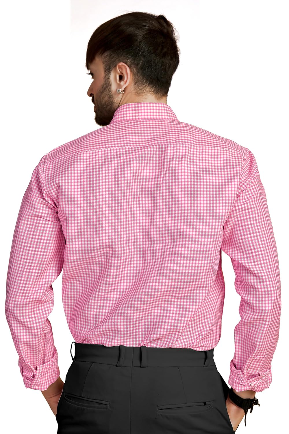 Men’s Premium Pink Micro-Check Full-Sleeve Cotton Button-Down Shirt – Classic Smart-Casual & Office Wear Shirt with Soft Breathable Fabric, Modern Fit