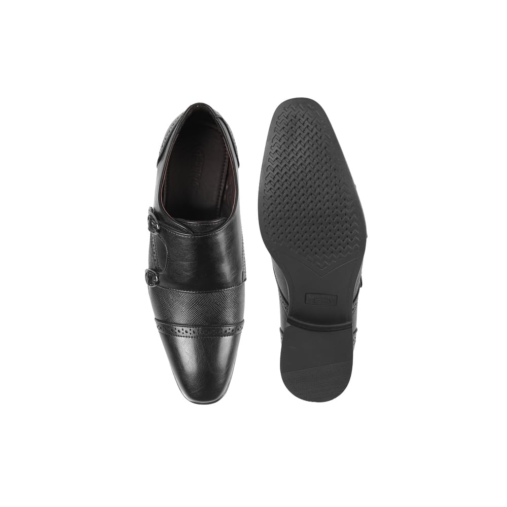 Metro Men Leather Adjustable Formal Double Monk Strap Shoes