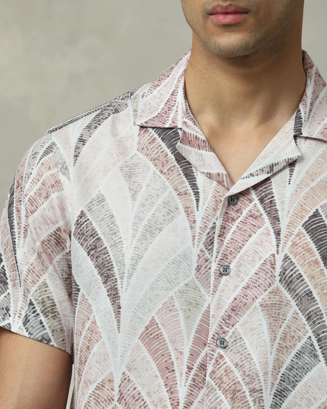 MUFTI Beige Geometric Relaxed Fit Shirt