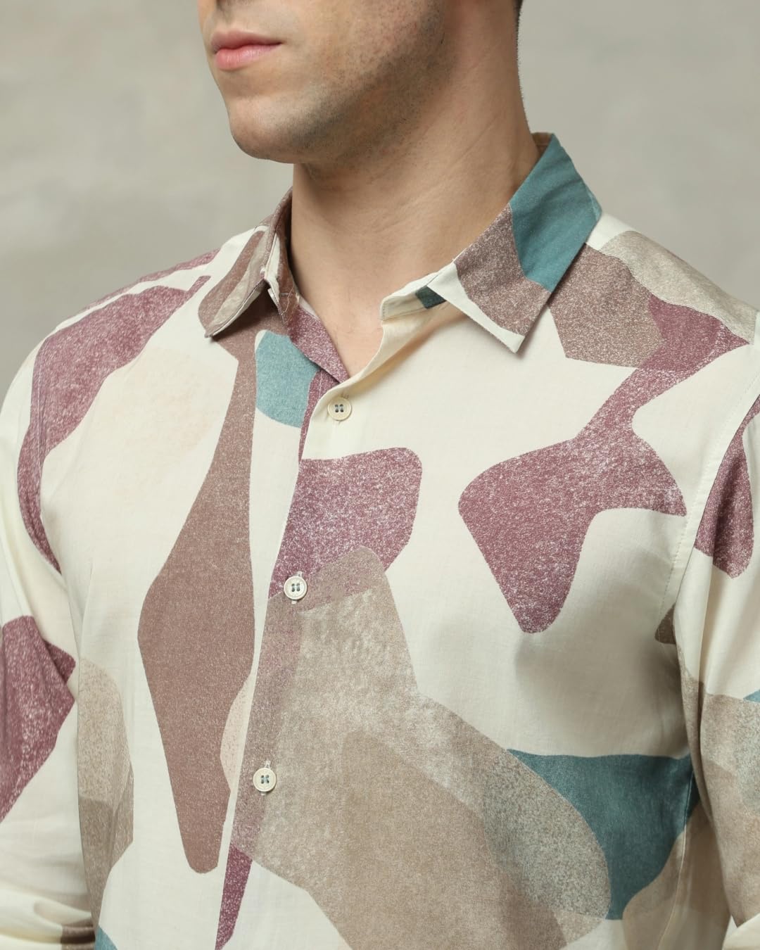 Make a statement with this off-white colored slim-fit shirt. Featuring a sophisticated spread neckline and full-length sleeves, this regular-type shirt is perfect for both formal and smart-casual occasions. The abstract pattern adds a touch of artistic flair, setting you apart from the crowd. Crafted from a cotton-viscose blend, it offers comfort and style in equal measure. The slim fit silhouette enhances your physique, while the unique pattern allows for creative pairing with various bottoms and accessories. Ideal for the fashion-forward man who appreciates attention to detail and contemporary design.