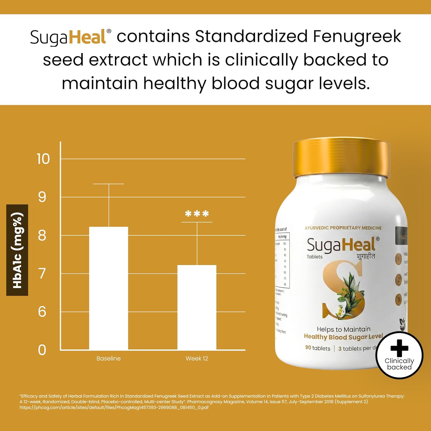 BASED ON AYURVEDA WITH SCIENTIFIC BACKING – The Principle ingredient in the SugaHeal contains Patented Fenugreek Extract Powder which is Standardised to Amino Acids such as 4 Hydroxyisoluecine, Alkaloids such as Trigonelline and Soluble fibers”.