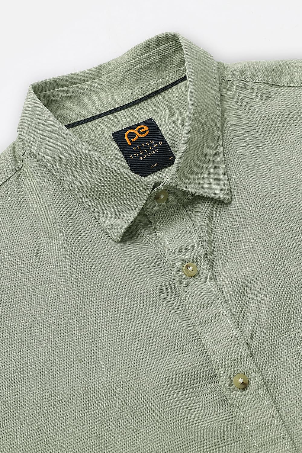 Peter England Men’s Solid Linen Blend Shirt | Casual Wear | Full Sleeves