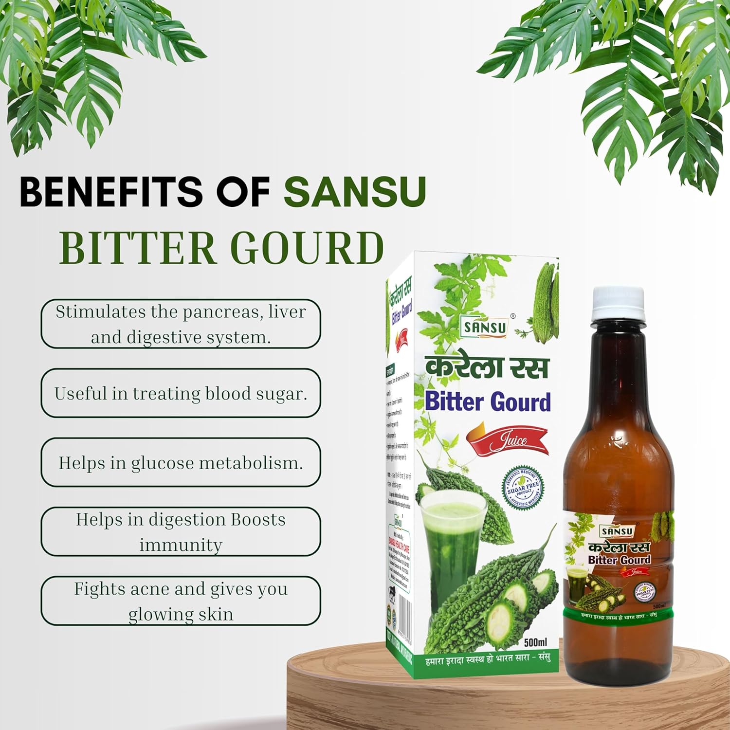 Sansu Karela Juice | Controls Blood Sugar Level | Diabetes Care | Boost Immunity – 500 ml. (Pack of 2)