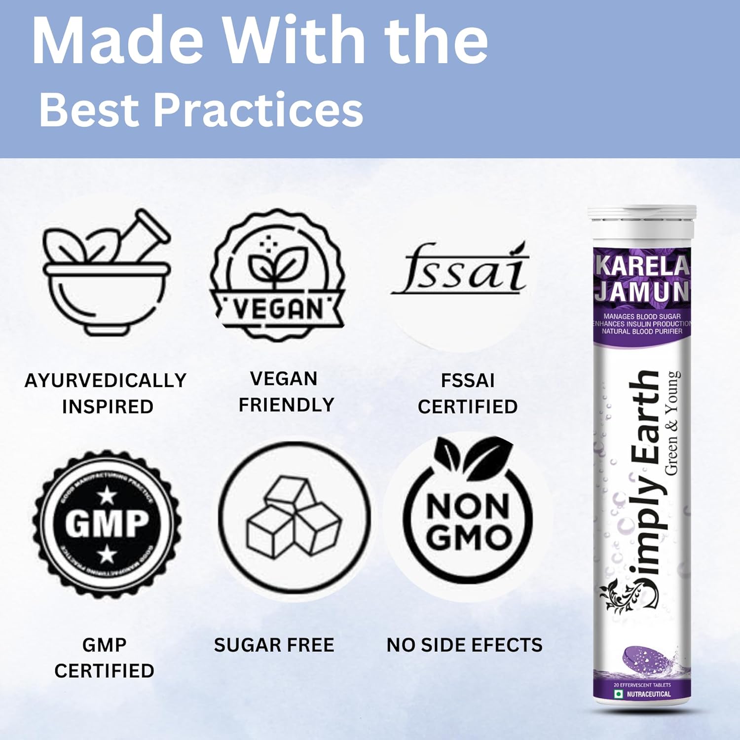 Simply Earth Karela Jamun Fizz Effervescent (Karela Jamun Juice)| Helps in High Sugar Conditions | Herbal Diabetes Management| Boosts Digestive Health| – 60 Effervescent Tablets