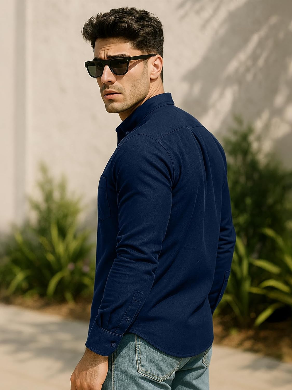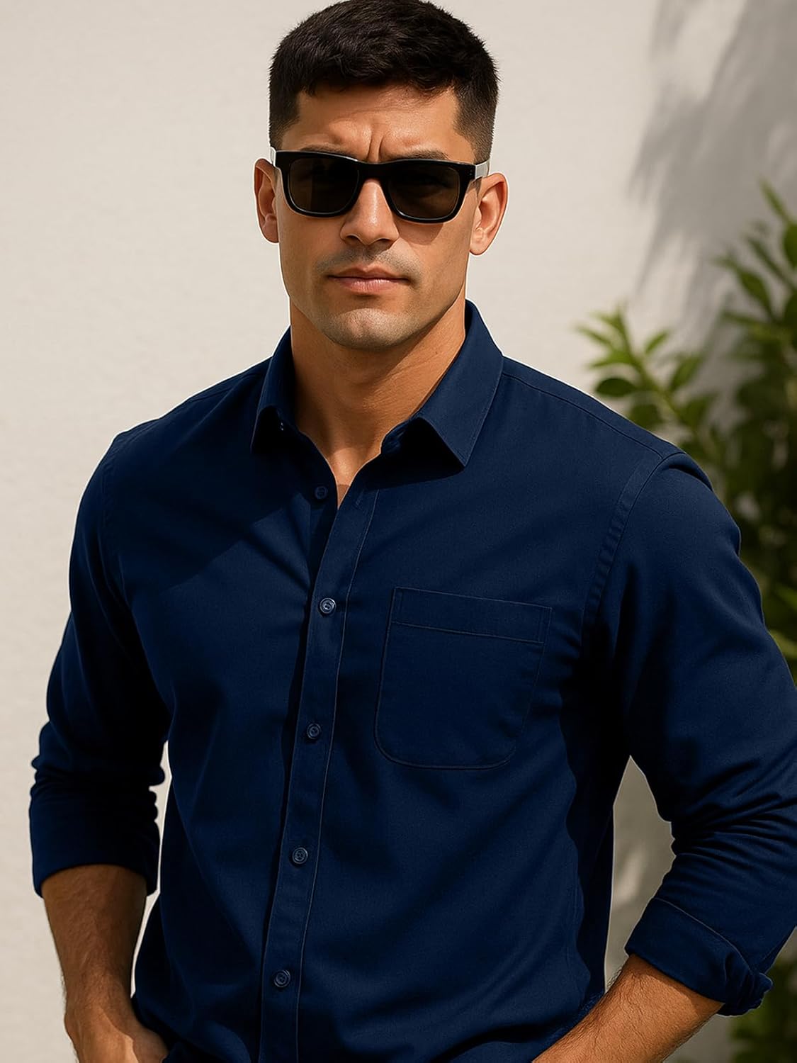 Men’s Cotton Blend Solid Shirt with Spread Collared Full Sleeve Curved Hemline Button Closure Slim Fit and One Pocket | Shirt for Man Full Sleeve