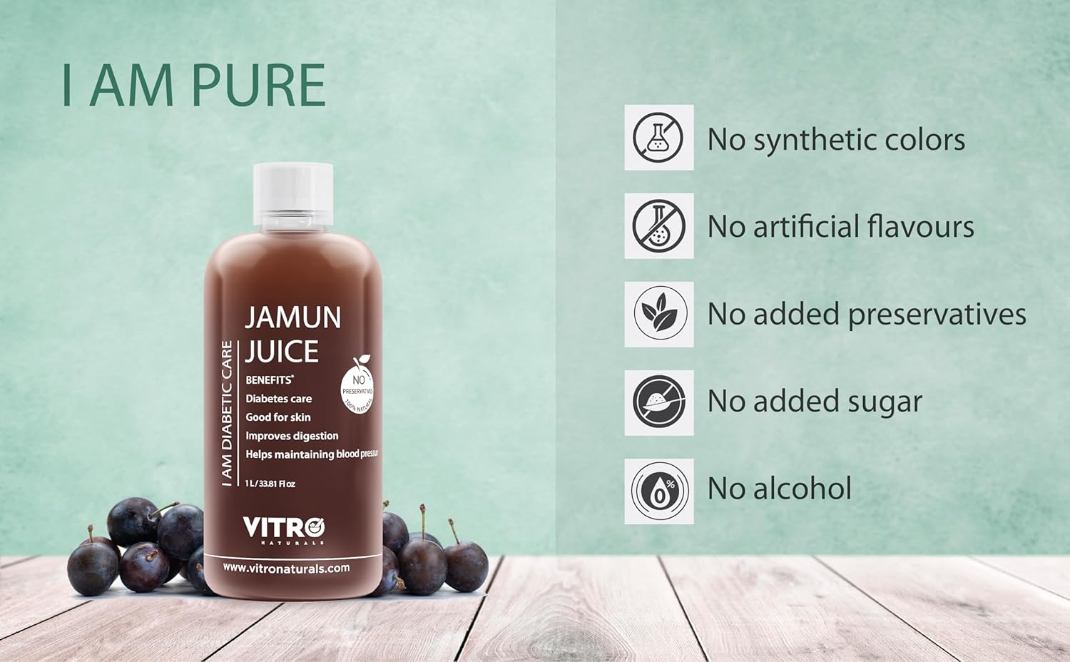 🔹 Jamun Fruit Extract – Vitro Jamun Juice is made from fresh, natural Jamun to support daily wellness and a healthy lifestyle with every serving.