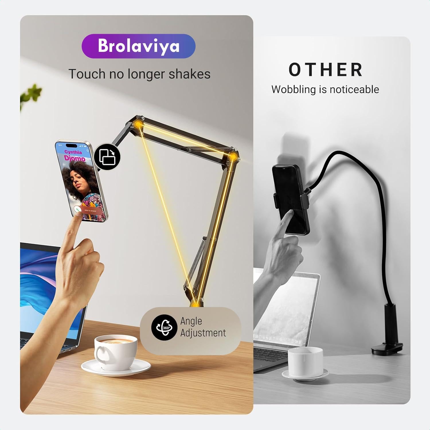 Brolaviya Upgraded with a magnetic bracket, a totally clip-free and hand-free stand with Large long arm overhead Gooseneck stand for Multipurpose use.