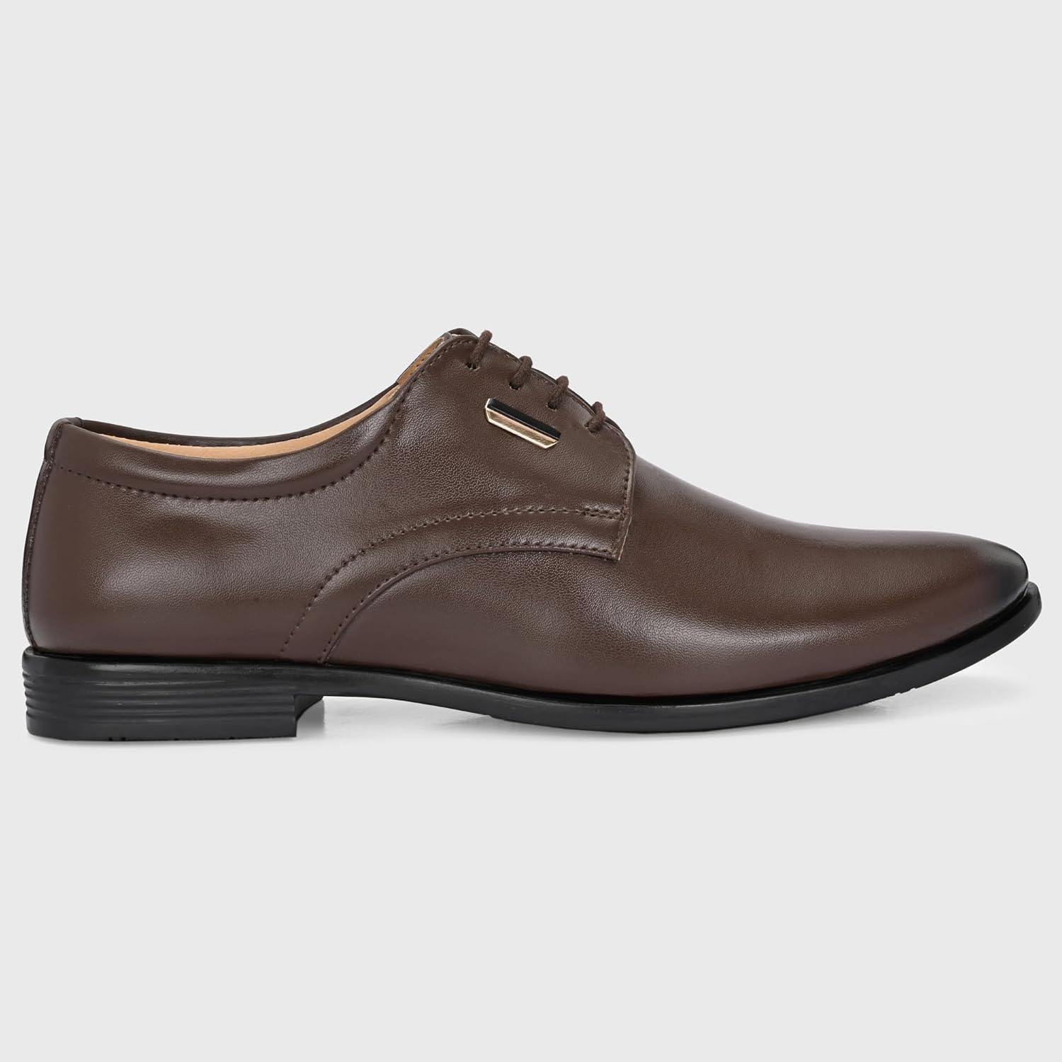 Liberty Fortune HML-6E Men’s Formal Derby Shoes – Black, Brown – Synthetic Leather Lace-Up with Cushioned Footbed – Stylish Office Footwear – Comfortable and Lightweight