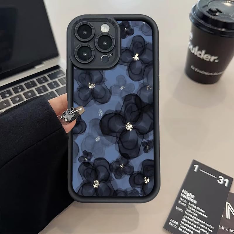 COVERLY Floral Sparkling Back Case Cover for iPhone 12 Pro Max | Hot 3D Flower Black Cute Design | Lens Protection | Soft TPU Silicone Aesthetic Print Cover for Girls & Women (Black, Shockproof)