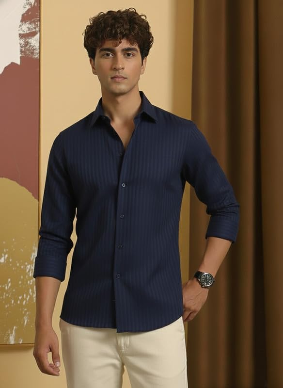 DEELMO Men’s Regular Fit Solid Soft Touch Textured Shirt || Casual, Formal and Bussiness Wear || (Available in Plus Size)