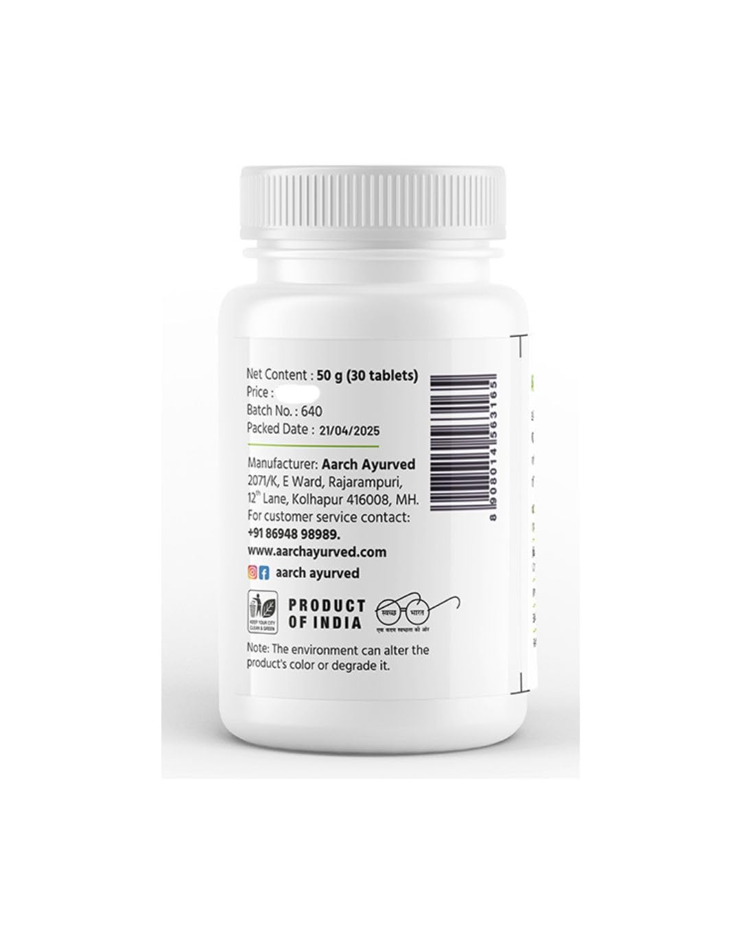 Manufacturer : AARCH AYURVED. 2071/ K. Sheetal chaya. E. Ward . Rajarampuri 12th lane, Kolhapur 416008