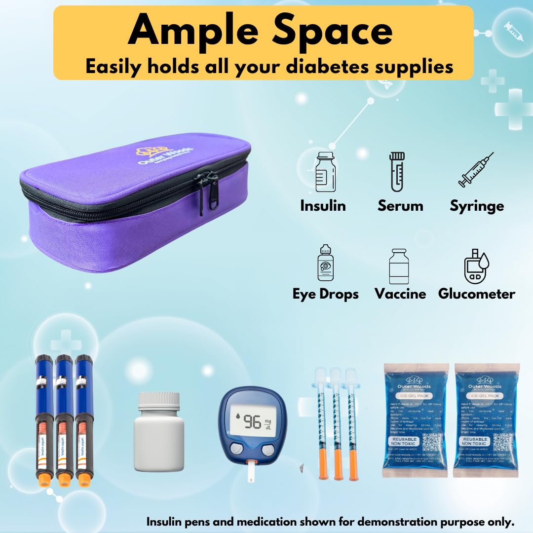 Keeps insulin and medicines cool for 6+ hoursComes with 2 reusable ice gel packs for extended cooling360° thermal insulation for maximum temperature retentionOrganised slots for insulin pens, vials, medicines, and gel packsCompact, lightweight, and easy to carry anywhereRemovable inner pouch for convenient daily useProudly Made in India with precision and care