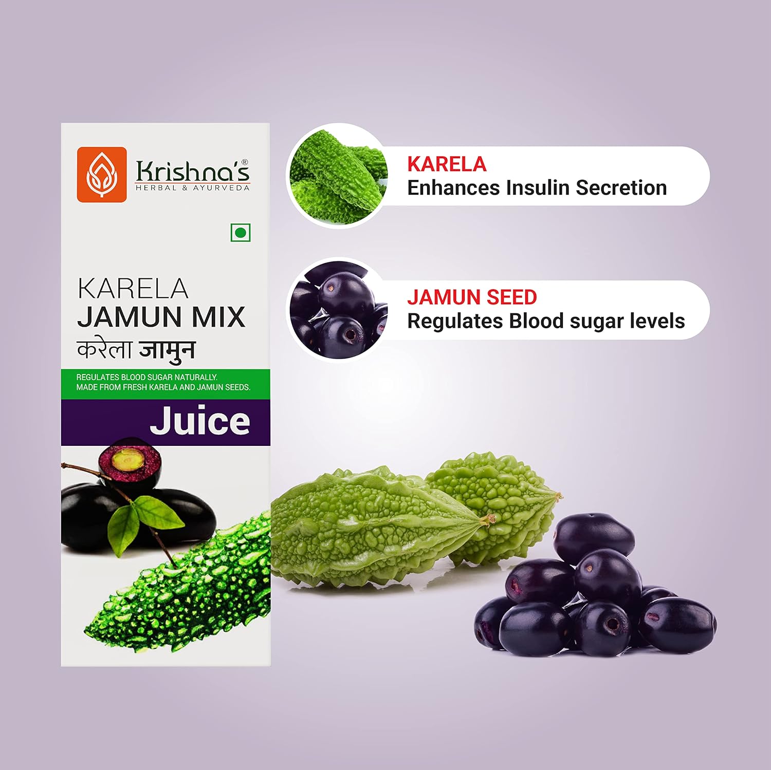 Krishna’s Karela Jamun juice (Bitter gourd and Indian Blackberry) is an Ayurvedic decoction containing the medicinal values of both these ingredients.