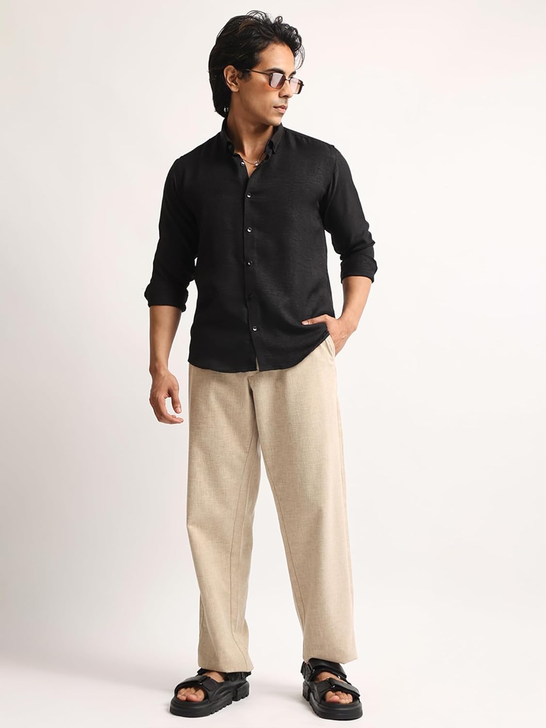 GRECIILOOKS Shirt for Man | Classic Beige Shirt for Man | Men’s Regular Fit Soft Cotton Blend Casual Shirts with Button Closure