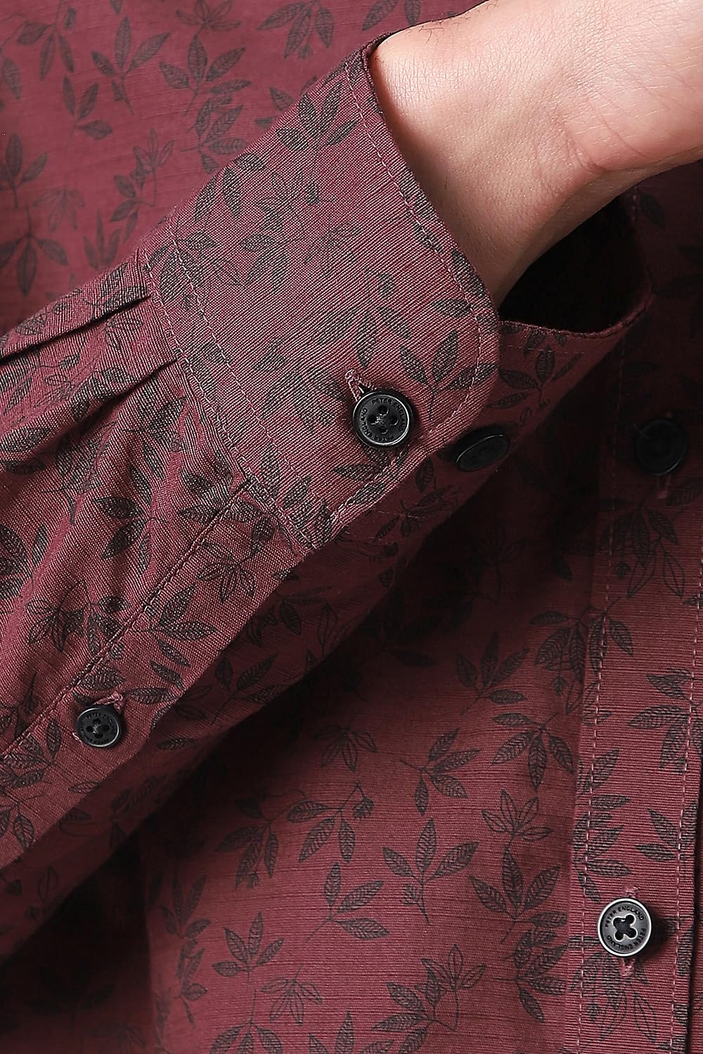 Peter England Men’s Slim Fit Full Sleeve Casual Shirt in Slub Cotton with All-Over Leafy Print