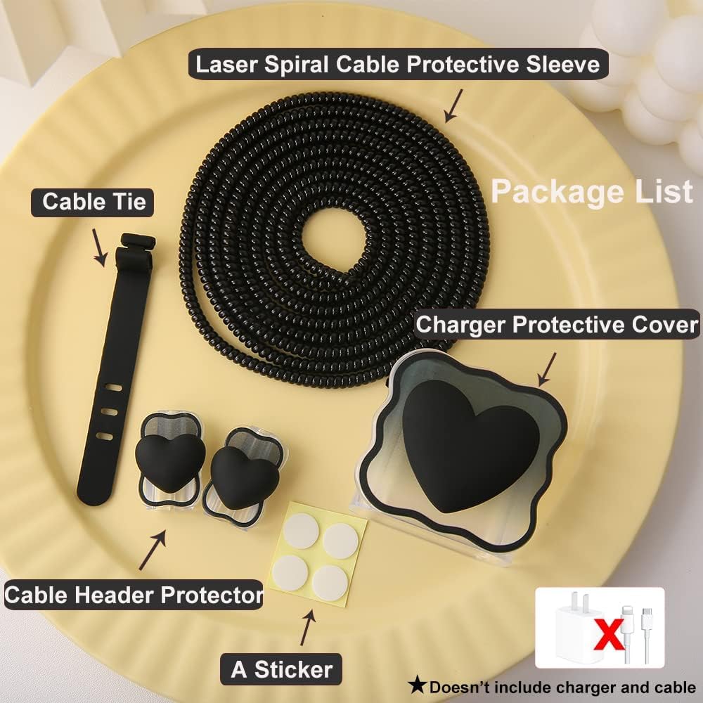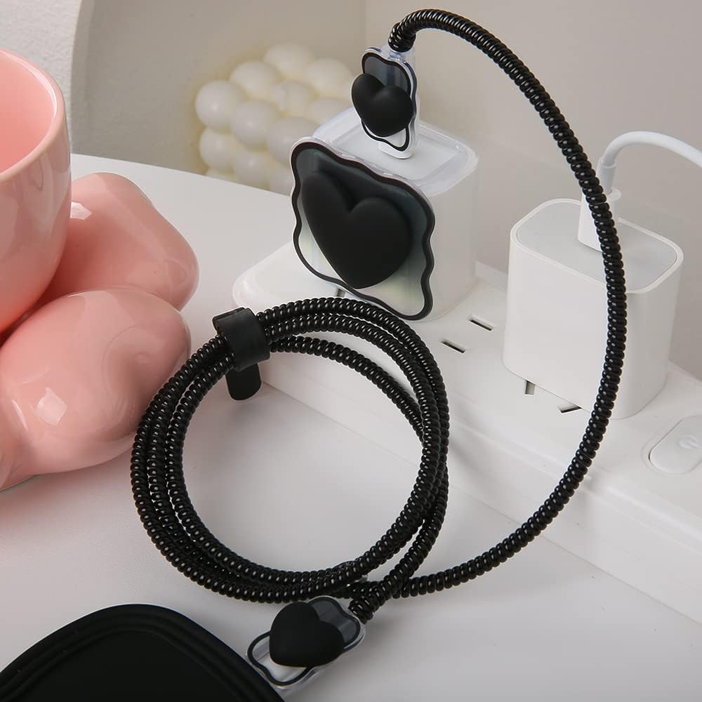 Protective Charger Case for iPhone 18W 20W iPhone17 16 15 14 13 12 11 Pro Max Charging Cable Charger Protective Cover Data Cable Protective Sleeve-Black Heart