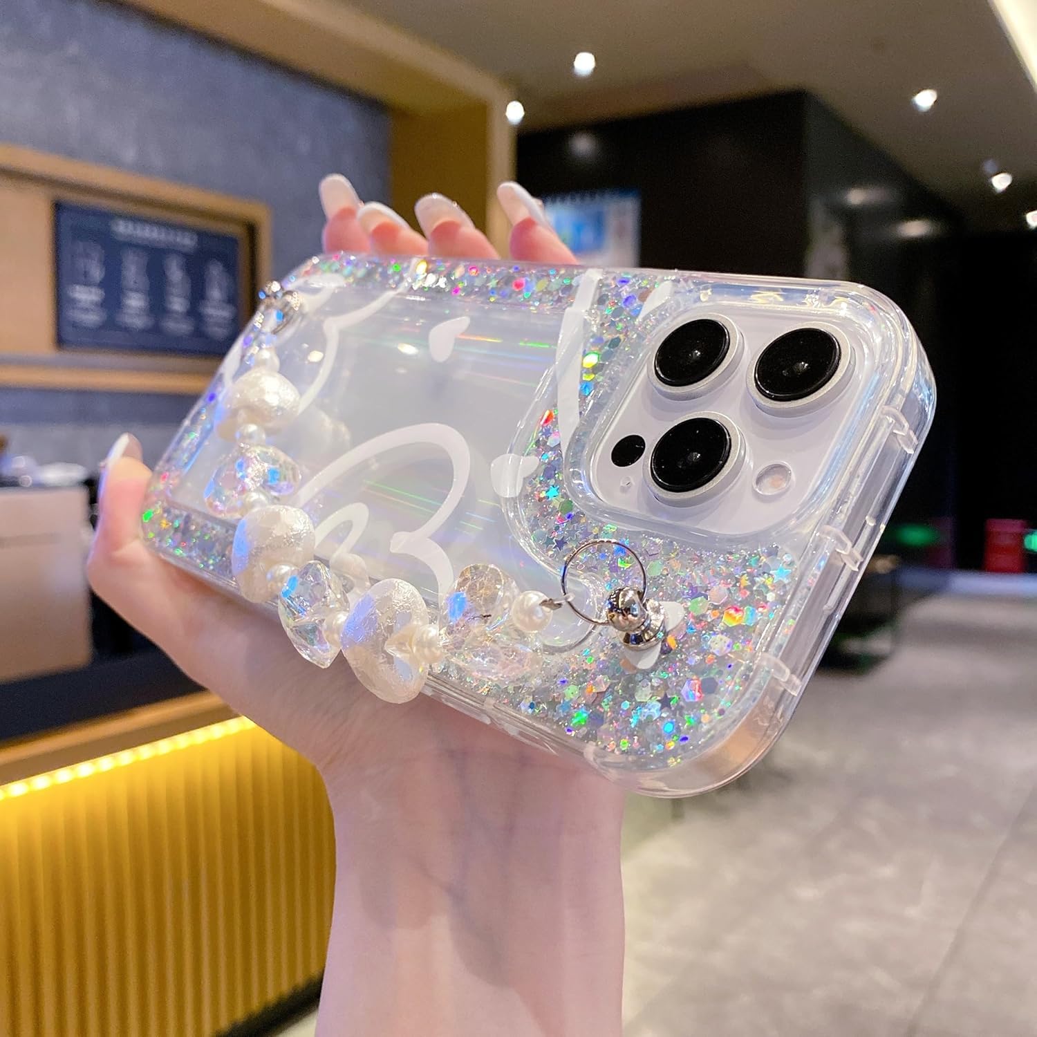 SPARKUP Glitter Heart Design Silicone Case with Heart Bracelet Chain I Back Cover for iPhone | Aesthetic Soft Shockproof Protective Transparent Covers for Girls & Women (iPhone 11 Pro)
