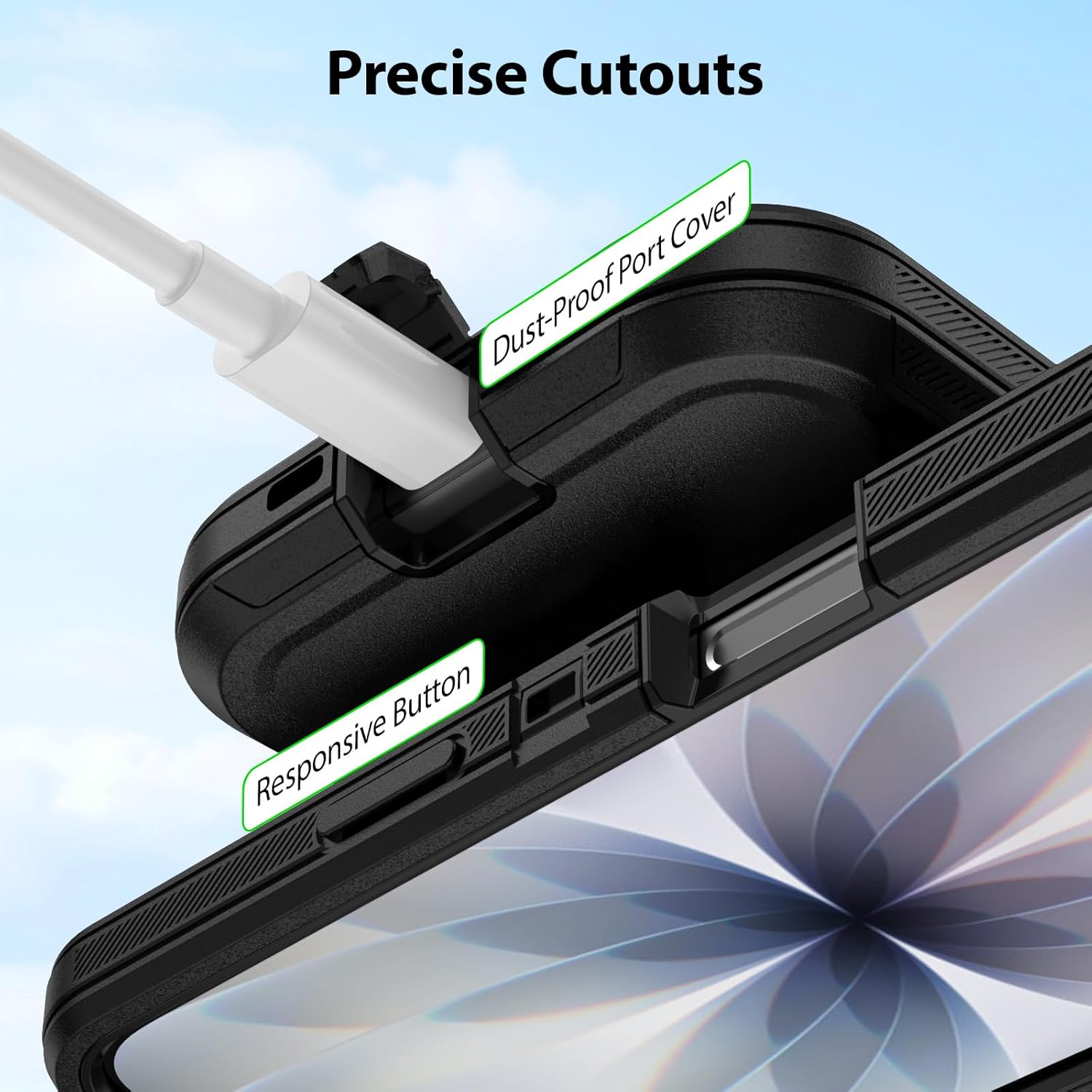 [Full Port Protection] The cover for iPhone 17 is built-in dust plugs for charging ports and precise cutouts with raised edges (1.5mm screen bezel & camera lip) prevent scratches and block debris/water ingress