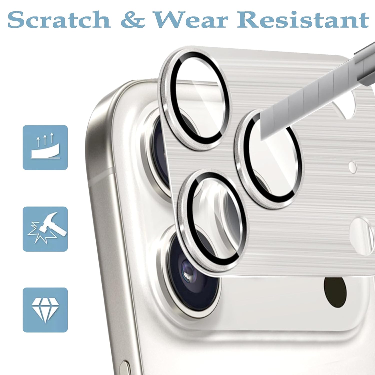 amazon basics Aluminium Plate Camera Lens Protector Compatible with iPhone 17 Pro Max, [Anti-Scratch] Premium Tempered Glass Film Full Plate Aluminum Alloy Lens Protector – White