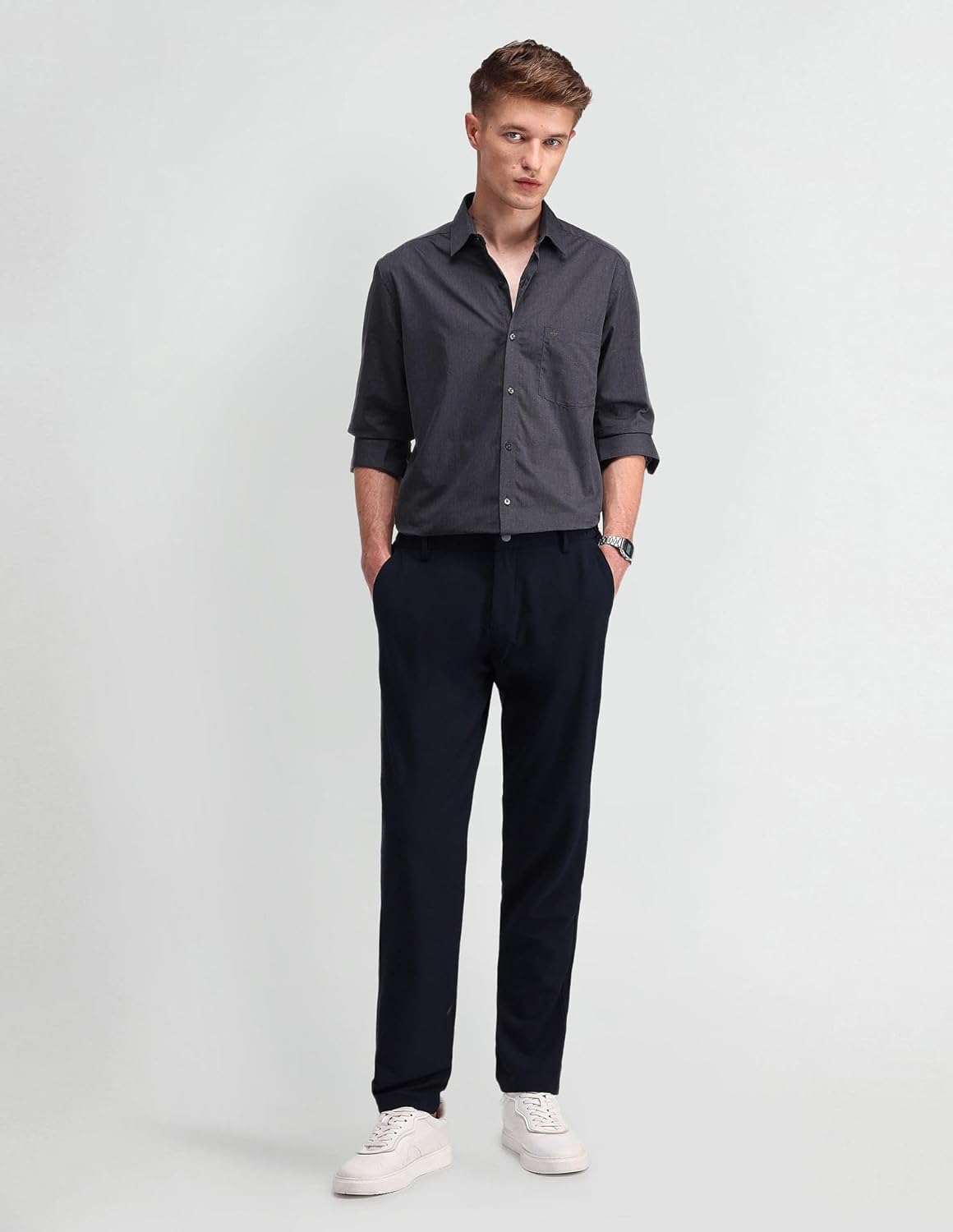 Arrow Men Slim fit Cotton Solid Long Sleeves Cutaway Collar Shirt