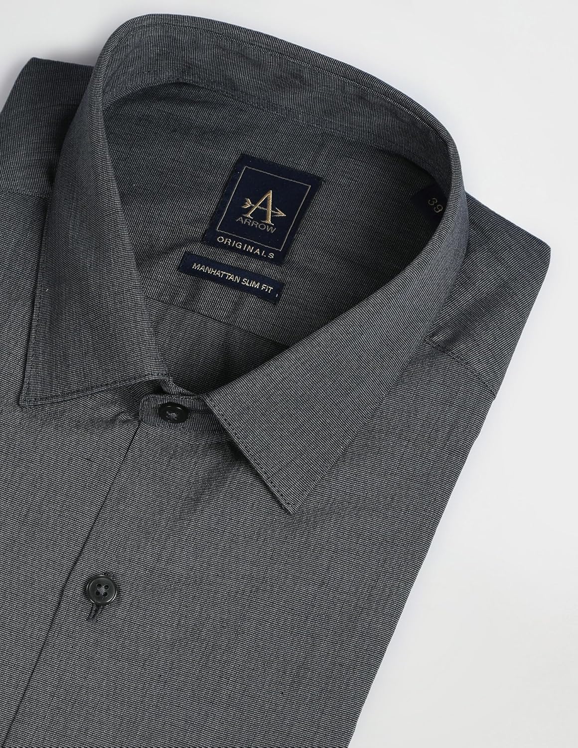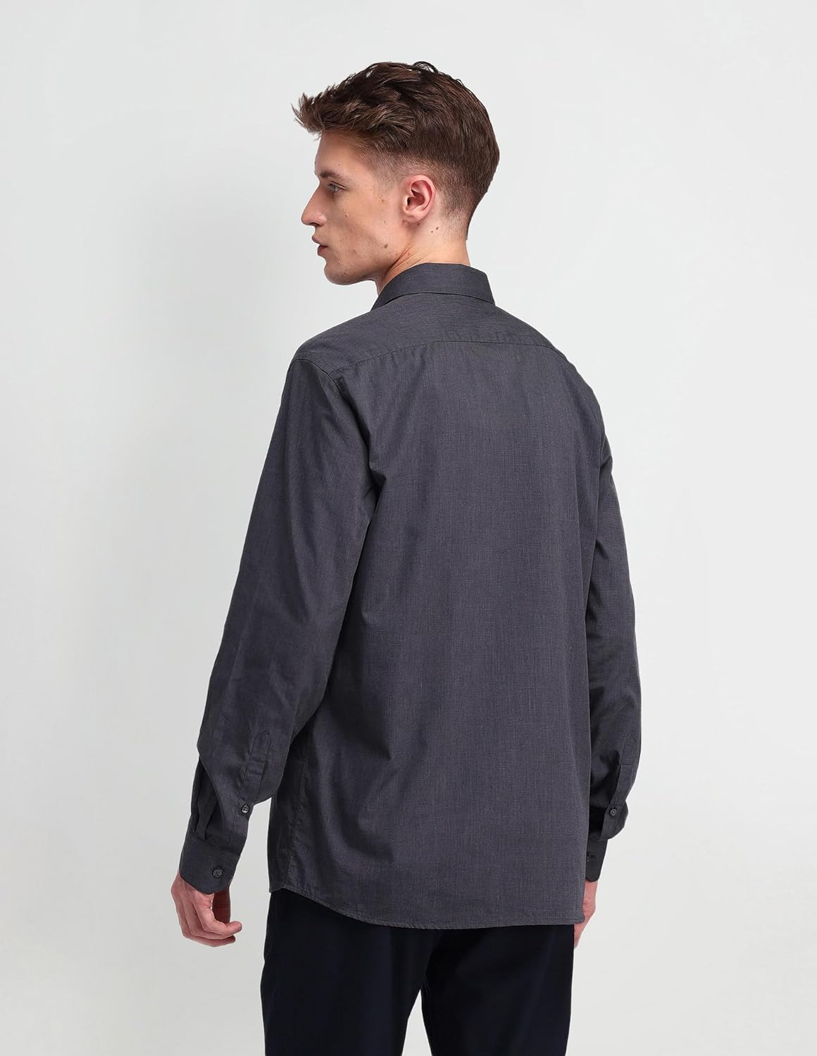 Stand out in any work setup by putting on this grey Arrow shirt, which features a refined solid pattern. Crafted from lightweight cotton fabric, it ensures around-the-clock comfort. Moreover, the Manhattan slim fit of this formal shirt flatters your form without feeling constricting. The crisp cutaway collar and adaptable long sleeves of this shirt create a versatile appearance suitable for any occasion. What’s more, the chest patch pocket on this cotton shirt for men offers a subtle touch of charm, while providing a handy spot for practical usage.