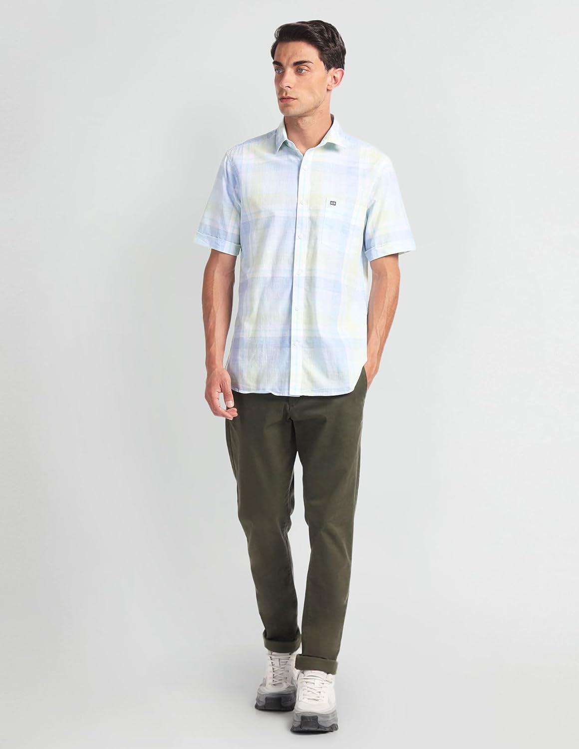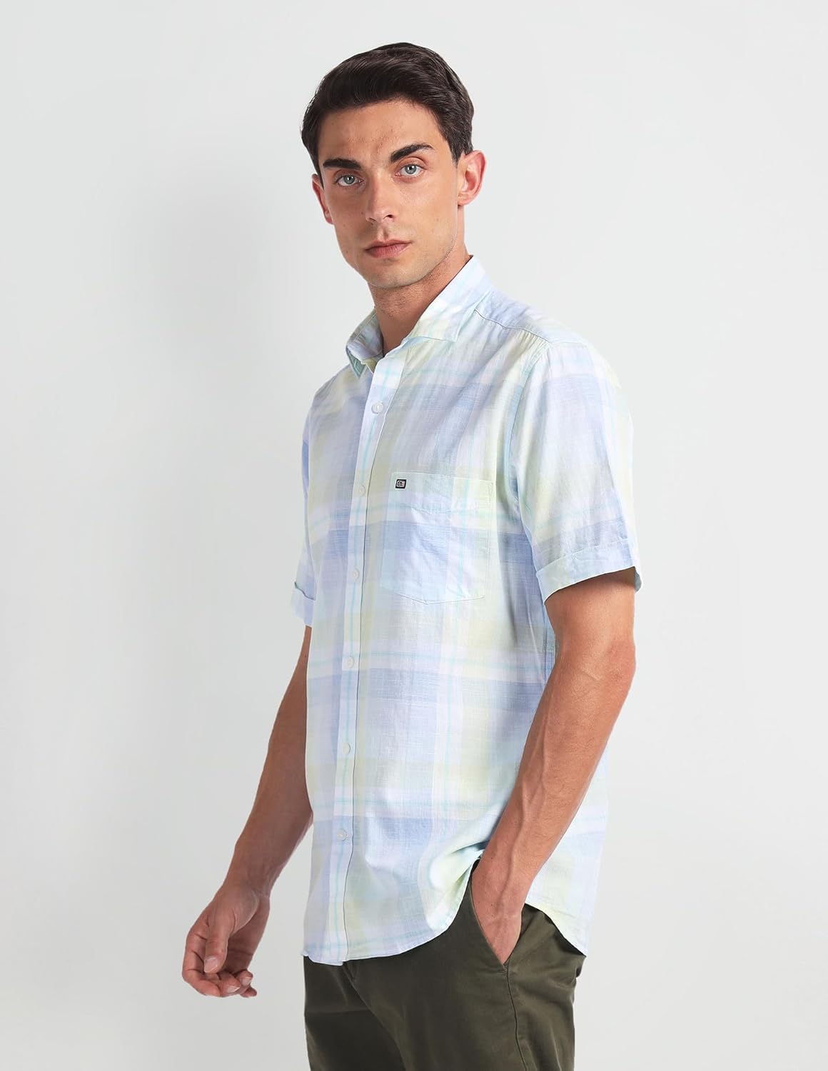 The playful checked pattern of this shirt will add a youthful vibe to your look while the breathable cotton fabric keeps you at ease all day.