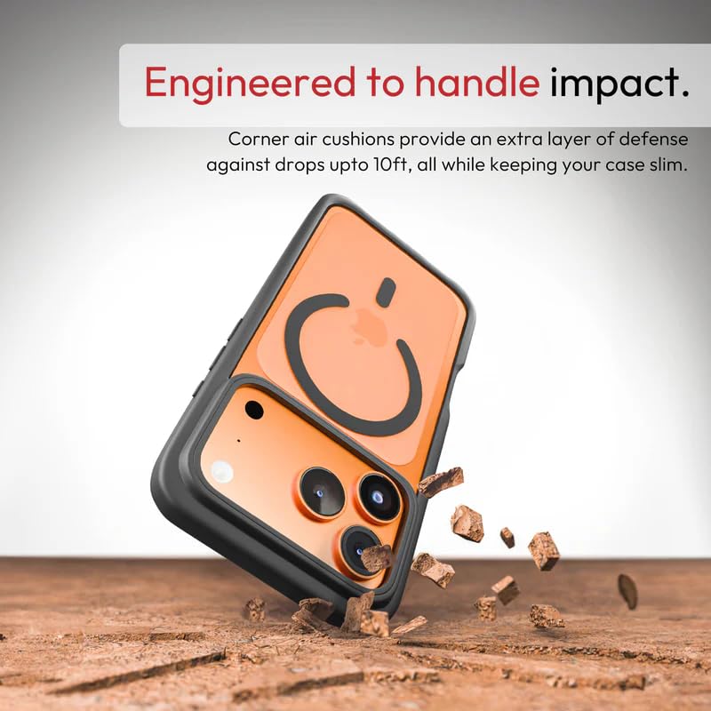 Capes Impact Armour Case for iPhone 17 Pro Max, Shockproof, 10 ft Drop Military Grade Protection, Compatible with MagSafe Back Cover, Non-Yellowing, PC + TPU + TPE Transparent Case, Black Clear