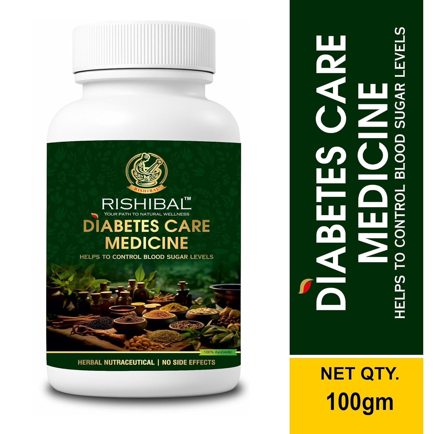 Rishibal Diabetes Care Medicine is a 100% Ayurvedic herbal nutraceutical powder crafted to support healthy blood sugar levels naturally. Made using time-tested herbs such as Gudmar, Jamun, Methi, Giloy, Karela, and more, this formulation works to regulate glucose metabolism, enhance insulin sensitivity, and maintain metabolic balance. Ideal for those seeking a natural approach to diabetes management, it supports overall well-being without the risk of side effects.