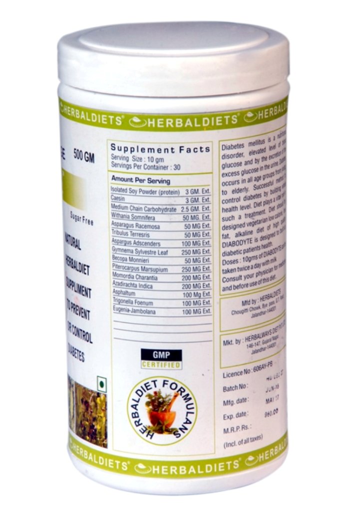 HERBALDIETS DIABODYTE is the perfect blend to provide nutritional requirement along with herbal formulations for healthy diabetic patient.