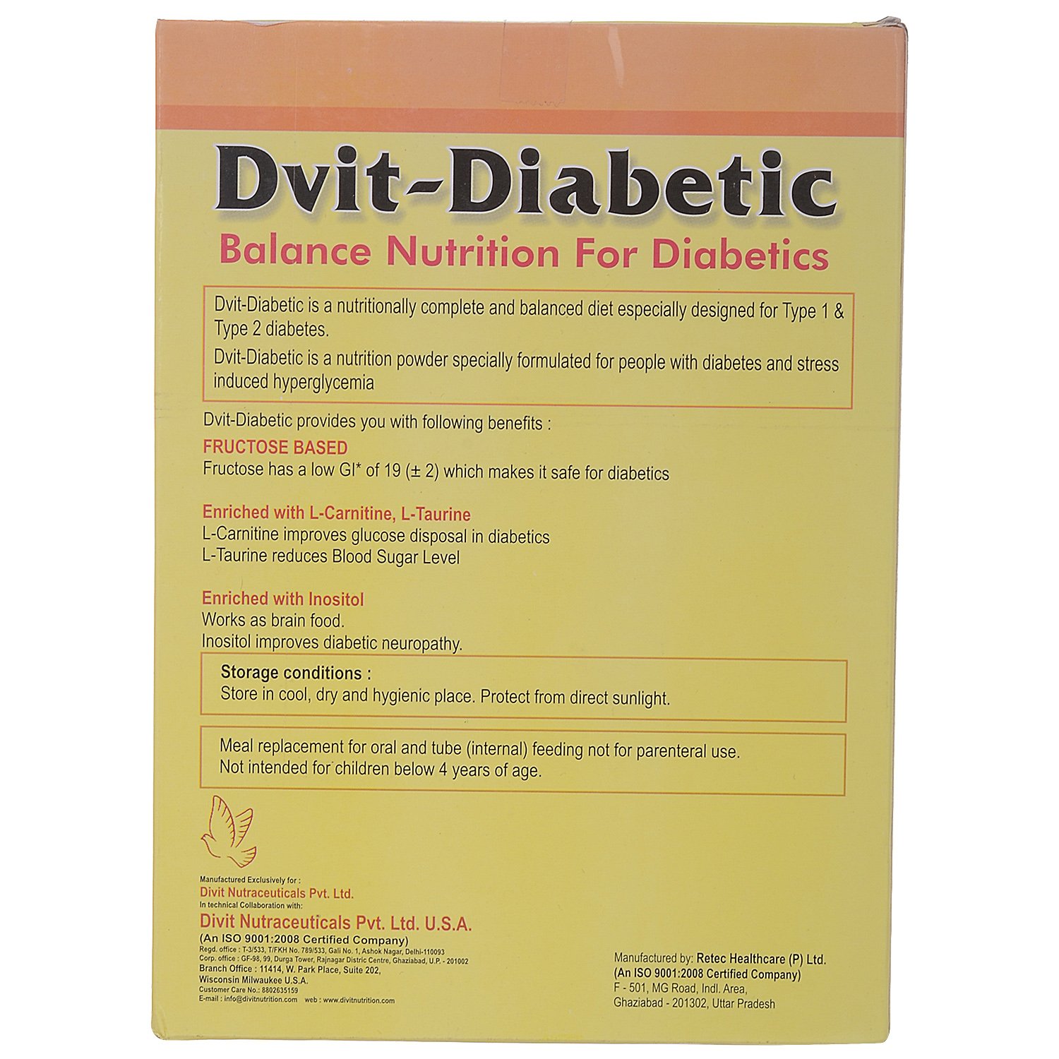 Diabeties Is A Grop Of Metabolic Desease In Which Blood Glucose Level Increses. The Reson Of Dibetics Is Difficiency Of Insulin Production Or Body Cells Don’T Respond To The Insulin Properly Or Both.Incresing The Blood Glucose Depends On Glycemic Index. Dvit- Diabetic Is A Fructose Based Product Which Has Low Gi Value. The Gi* Value Of Fructose Is 19 ± 2 And This Value Is Safe For The Diabetics. Dvit-Diabetic Also Contains Whey Protein Concentrate. Wpc Helps To Improve Immunity And Reduces The Diabetic Stress.