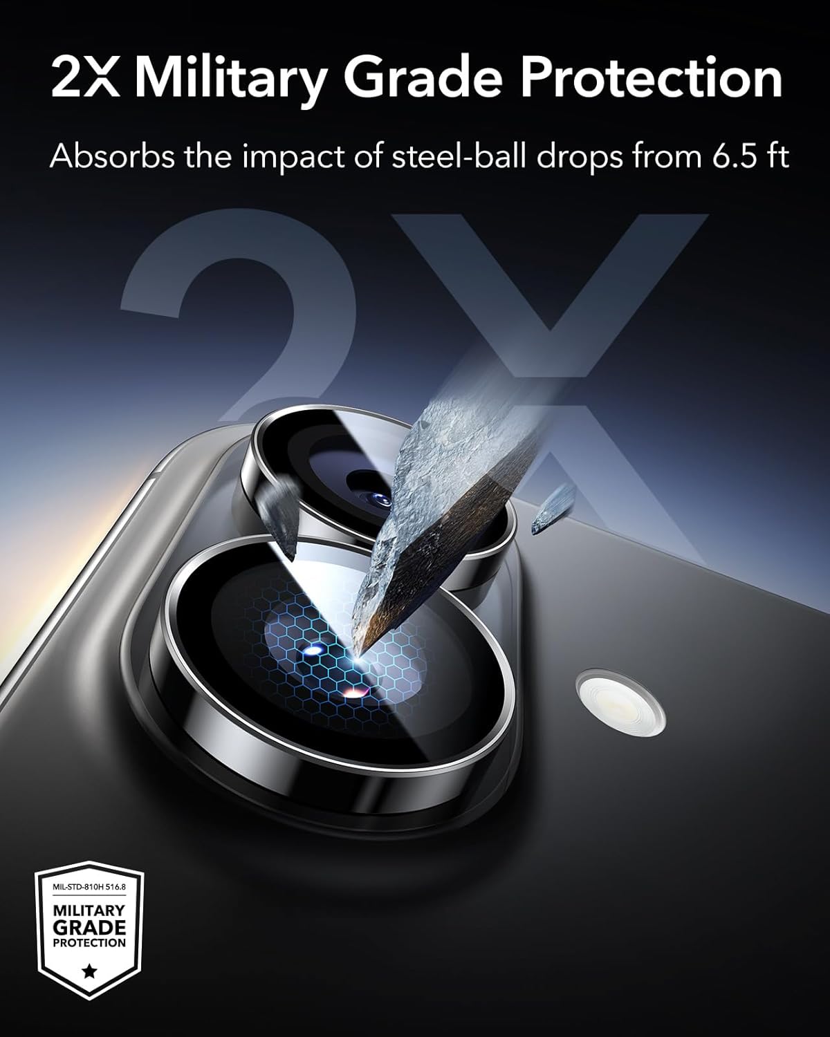 ESR Camera Lens Protector for iPhone 17/16/16 Plus, Tough HD Individual Protectors, Scratch Resistant, Ultra-thin Tempered Glass, Armorite Series, 1 Pack, Black