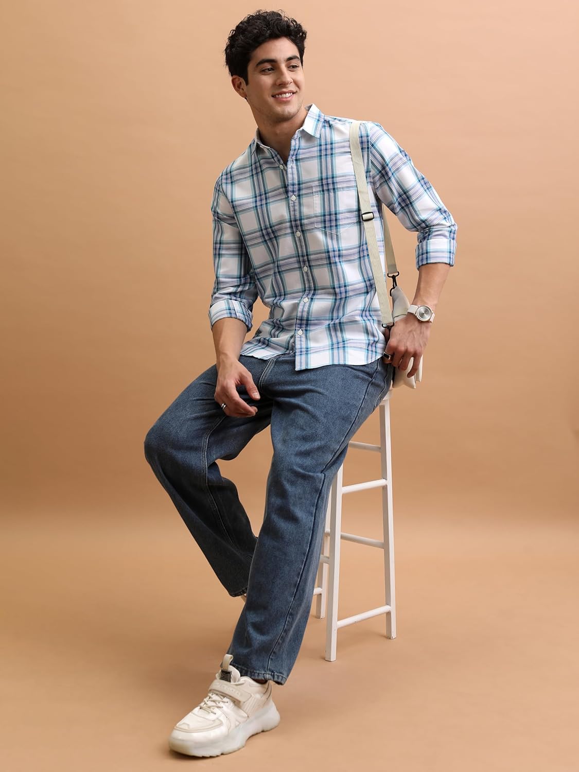 The Indian Garage Co Men Regular Fit Checkered Full Sleeves Cutaway Collar Casual Shirt