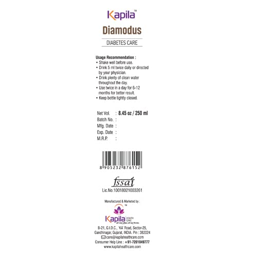 Kapila Diamodus | Diabetes Care | Heart Care | Sugar Metabolism | Low Glycemic Index | Maintain Healthy inflammation Response | No added Sugar | 250 ml | 25 Day serving per Bottle