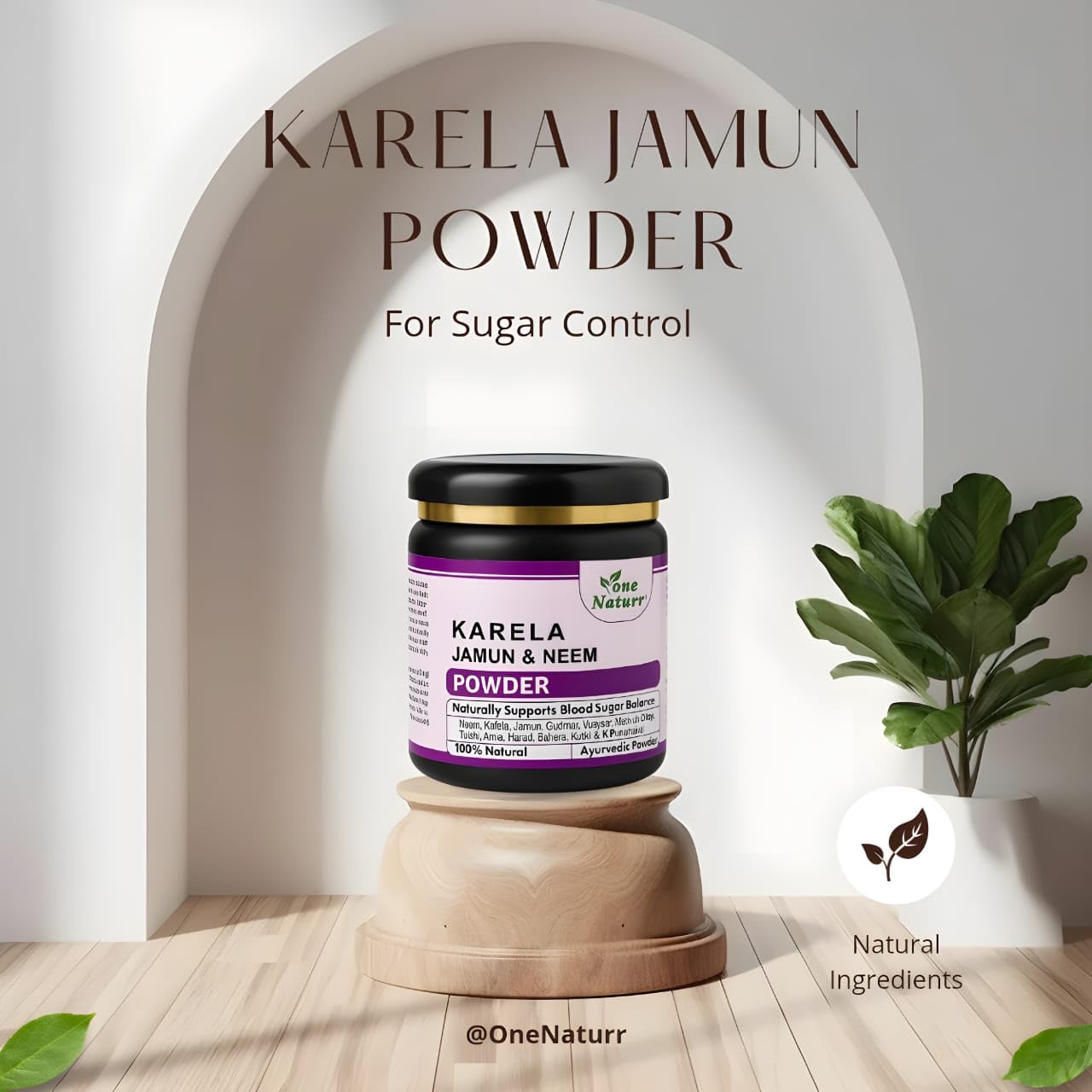 1. Natural Diabetes Support – Karela Jamun Powder is an ayurvedic herbal remedy made with bitter gourd (karela) and jamun seed powder, known to help in sugar control and natural glucose management.