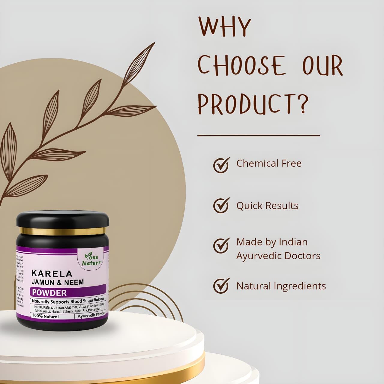 Karela Jamun powder for diabetes with 13 potent herbs Naturally Support Blood Sugar level 100% Ayurvedic Formula karela jamun Sugar Control Powder (200g)